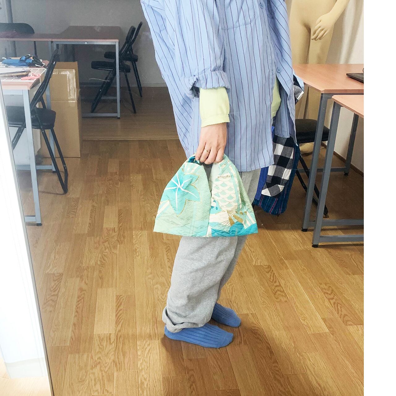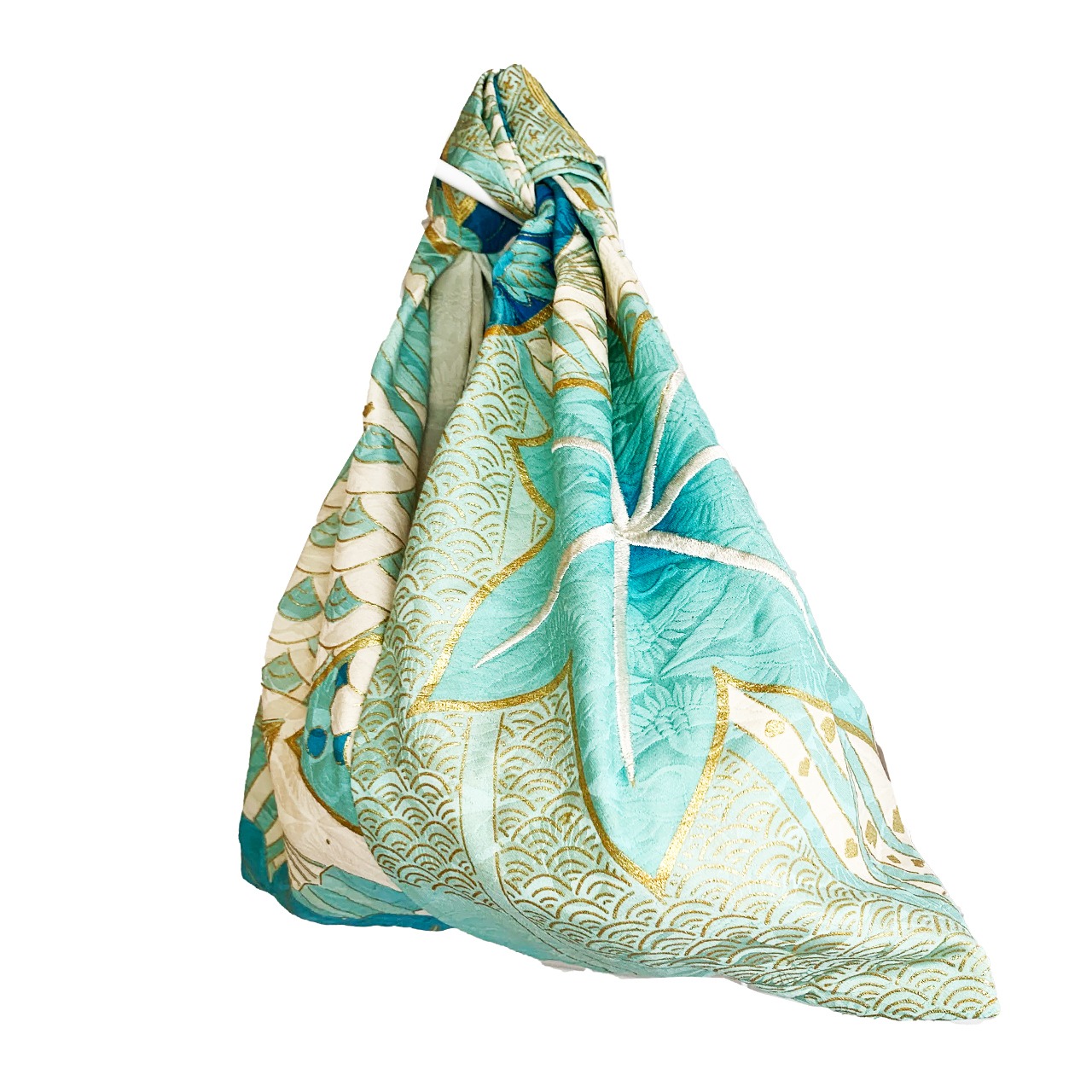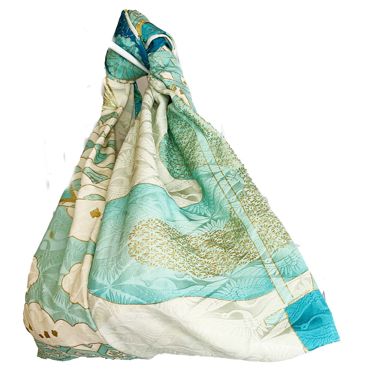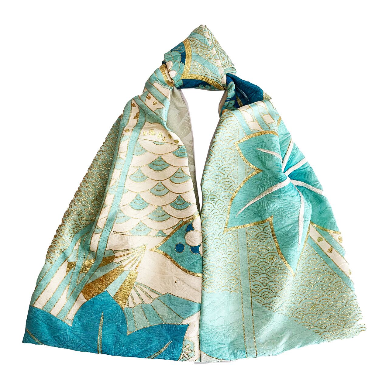 眠っていたお着物を解体して再構築した、おキモノワンマイルバッグです。