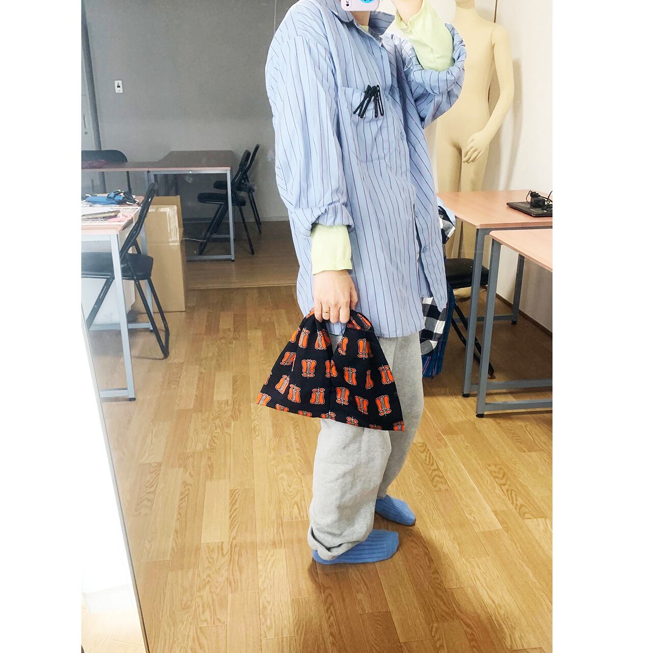 眠っていたお着物を解体して再構築した、おキモノワンマイルバッグです。