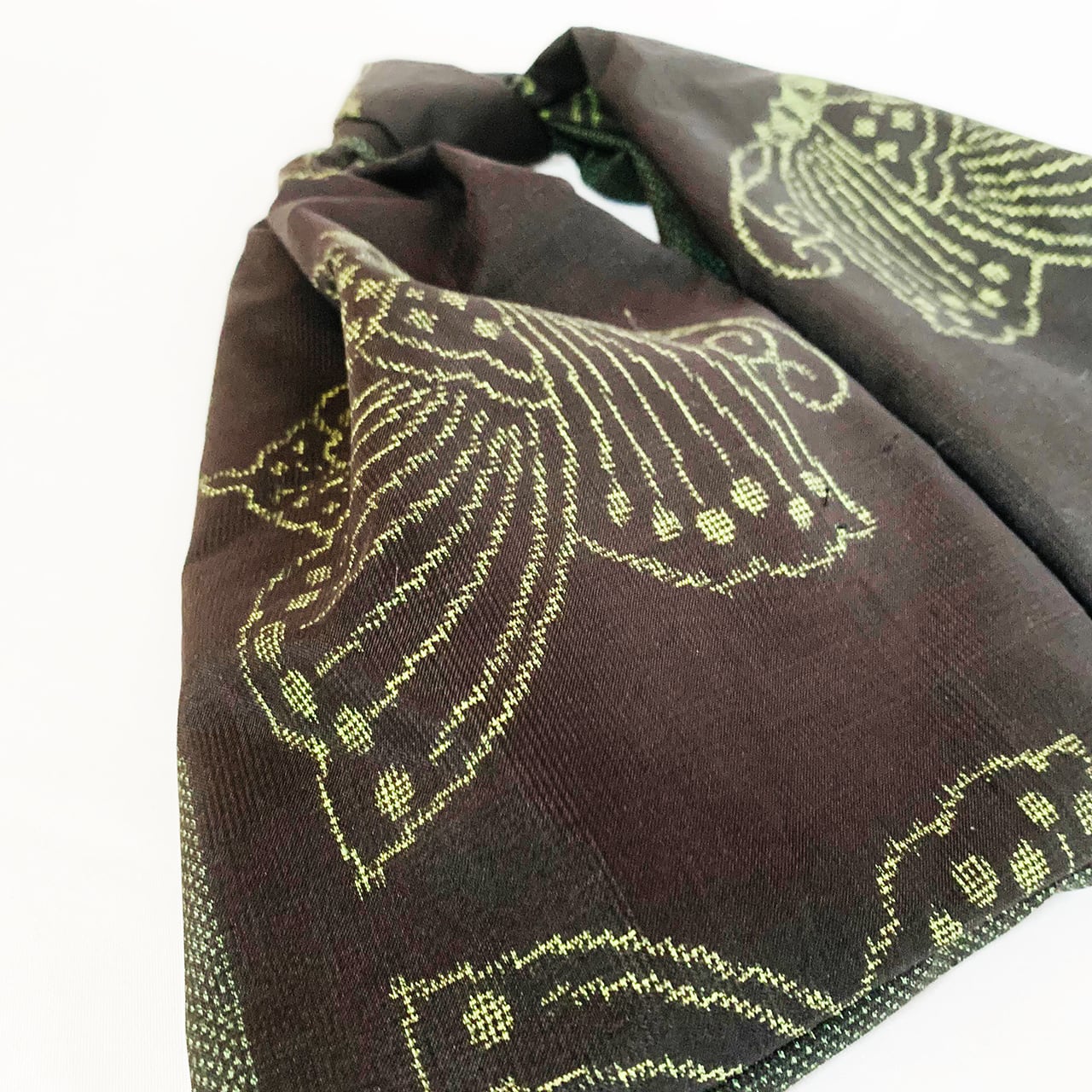 眠っていたお着物を解体して再構築した、おキモノワンマイルバッグです。
