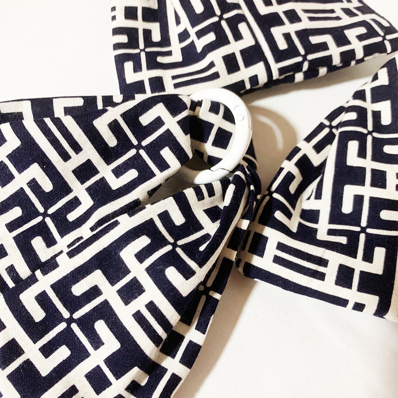白い丸カラビナがひとつついていますので、別売りのストラップやお手持ちのバッグなどにつけたりしてもとってもkawaii!