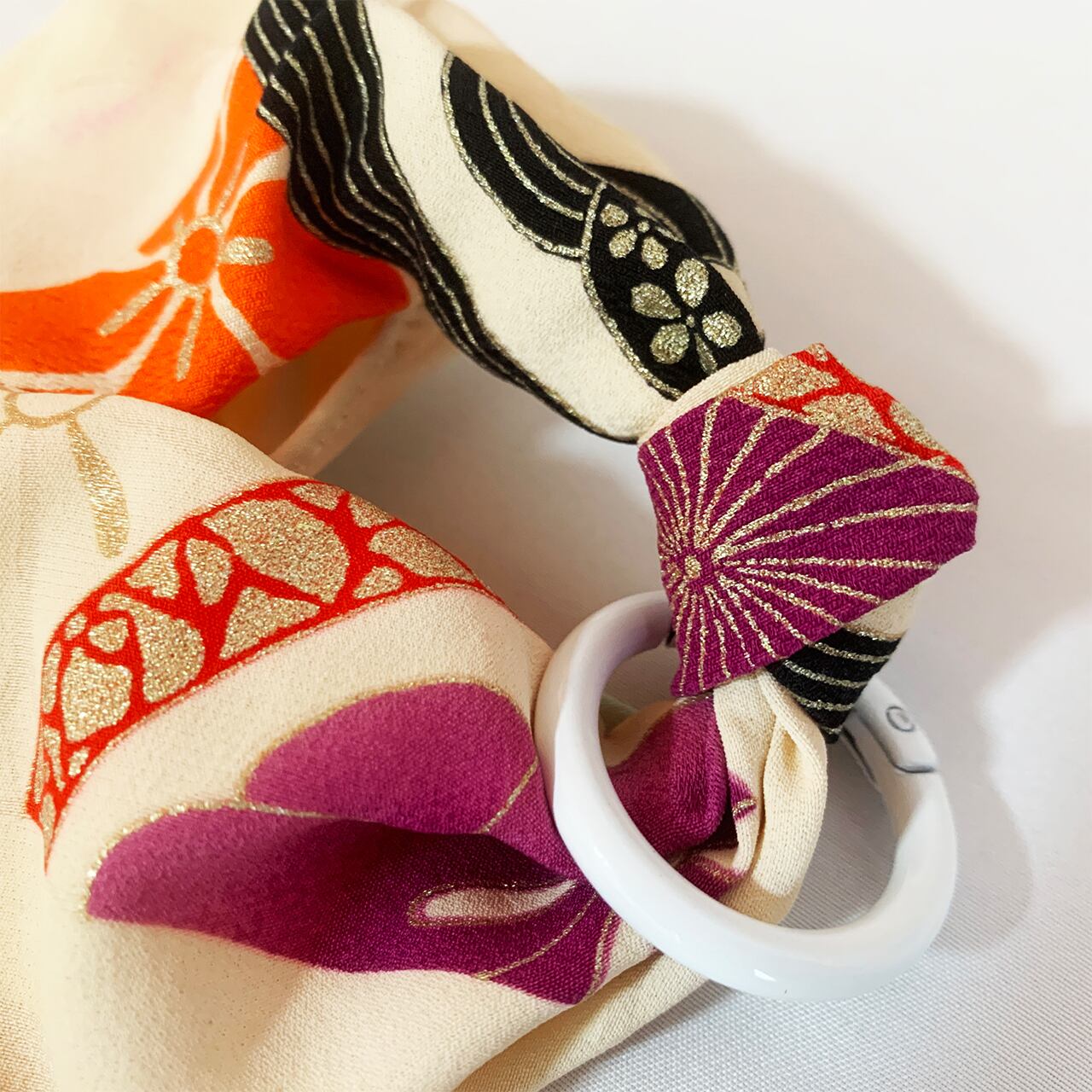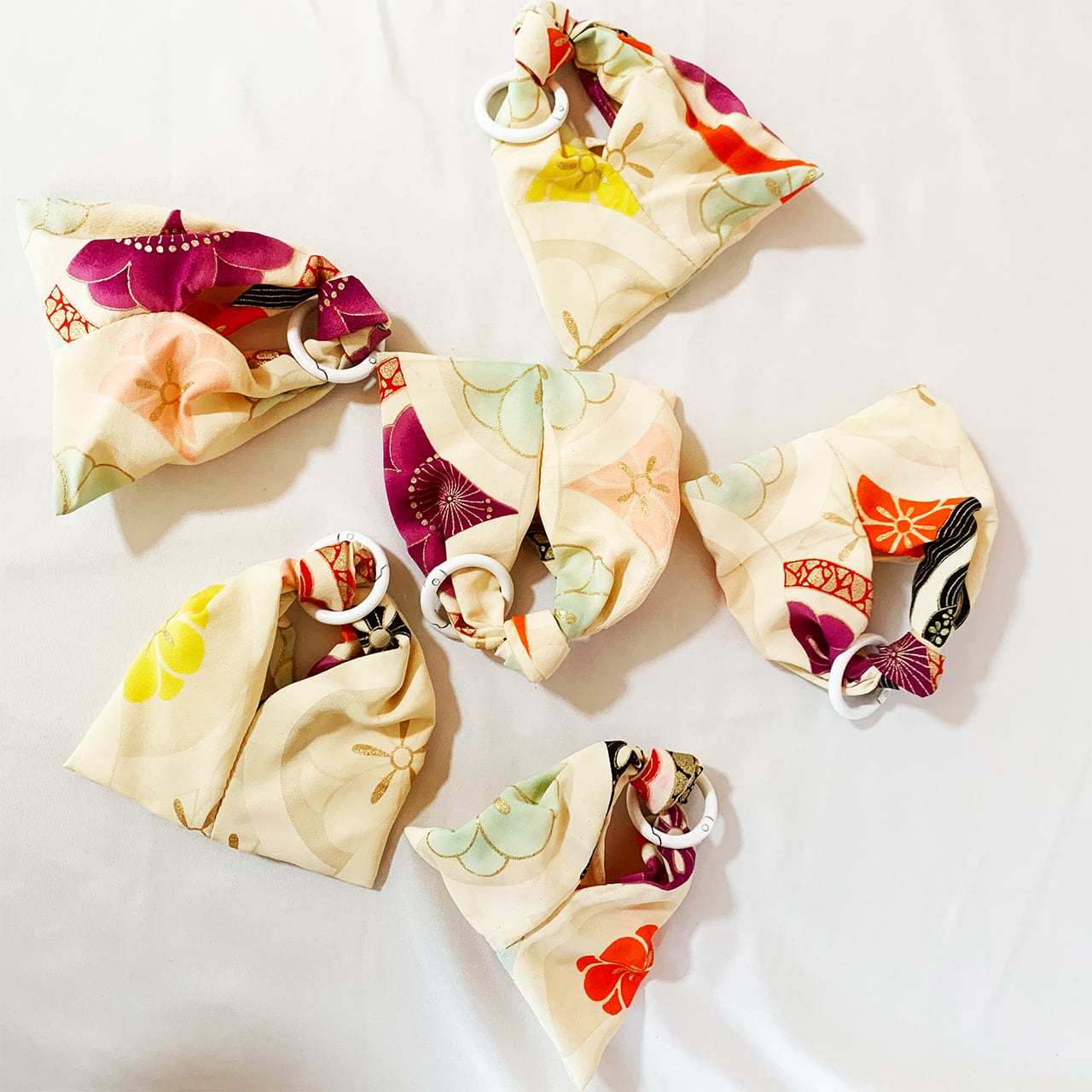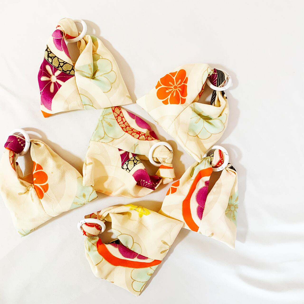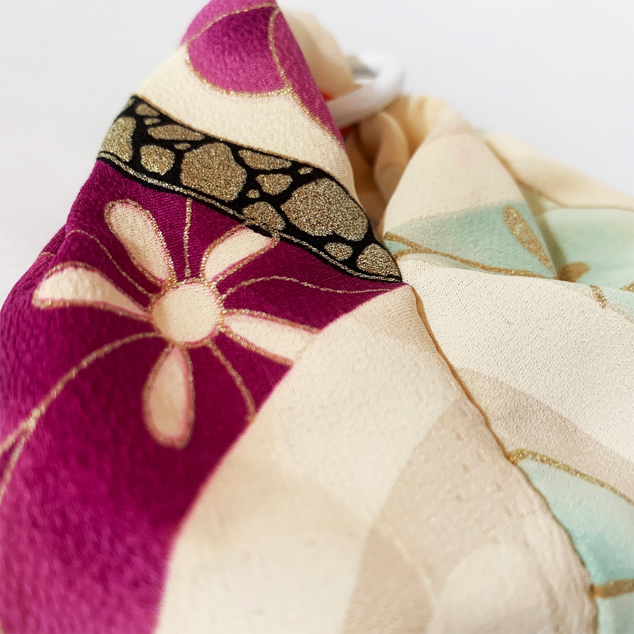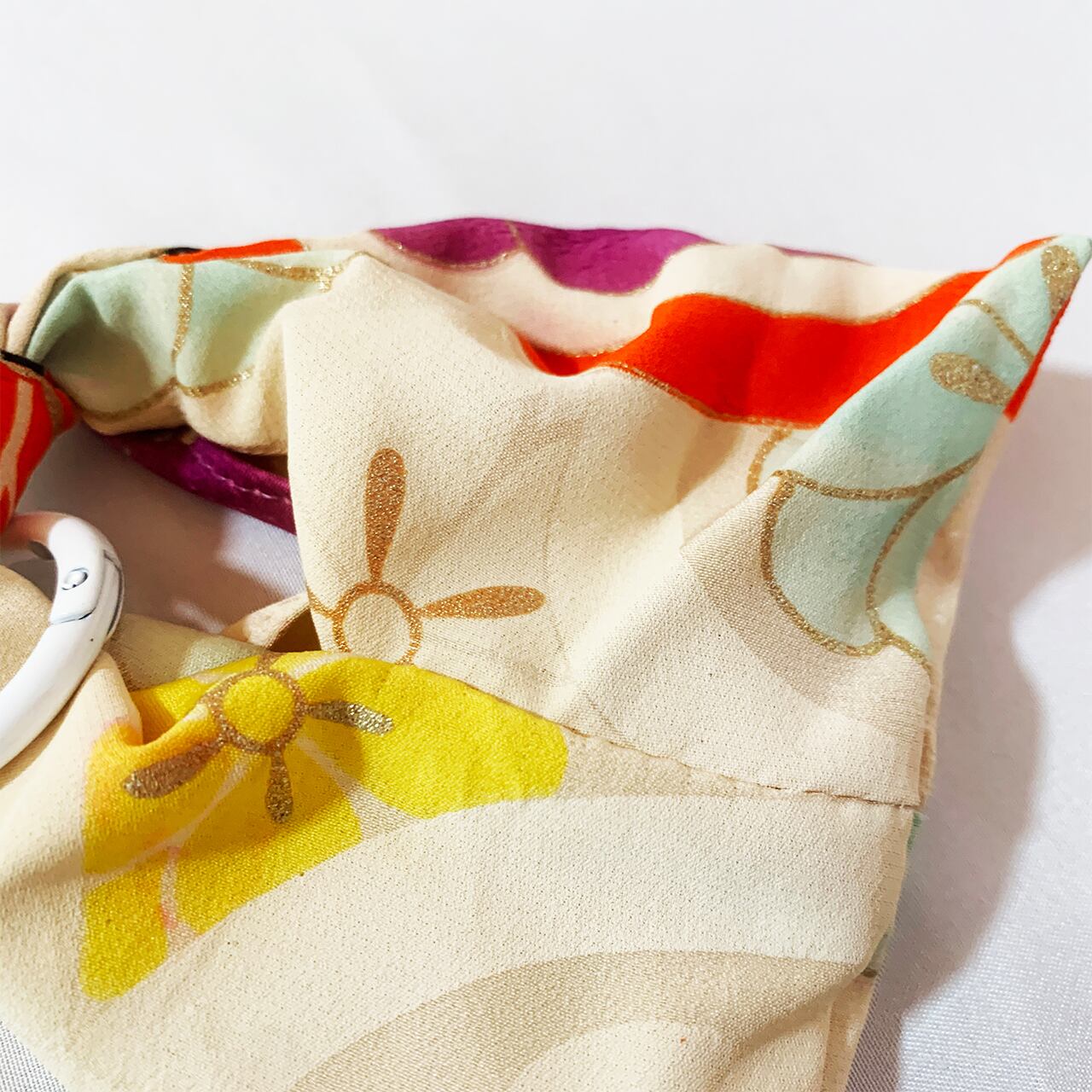 眠っていたお着物を解体して再構築した、おキモノワンマイルバッグのミニミニサイズver.です。お着物1枚分から作ることのできる数が限られている、希少で個性ある逸品です。