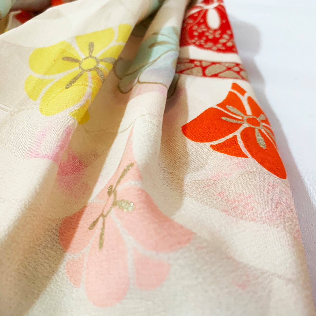 ※※着物に仕立ててあったものを解体しているため、アイロンなどでもとれなかった折り目やシワなどが残っている場合がございます。ぜひそれ自体も味として受け止め、思いをはせていただけますと幸いです。
