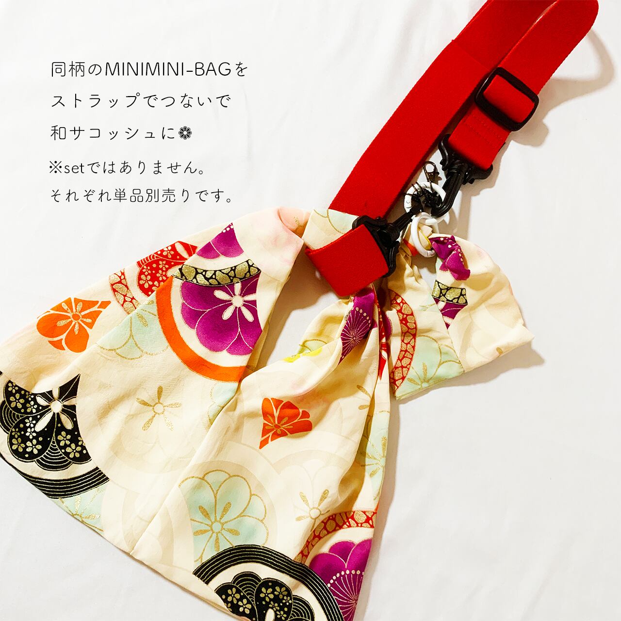 ◆同生地ミニミニバッグとストラップを組み合わせ、和サコッシュとしてどうぞ