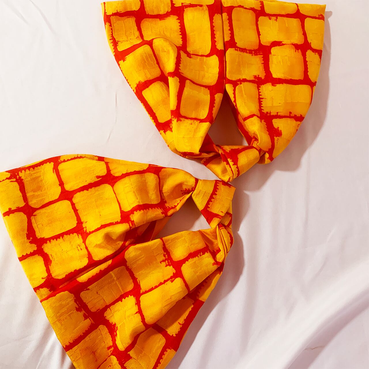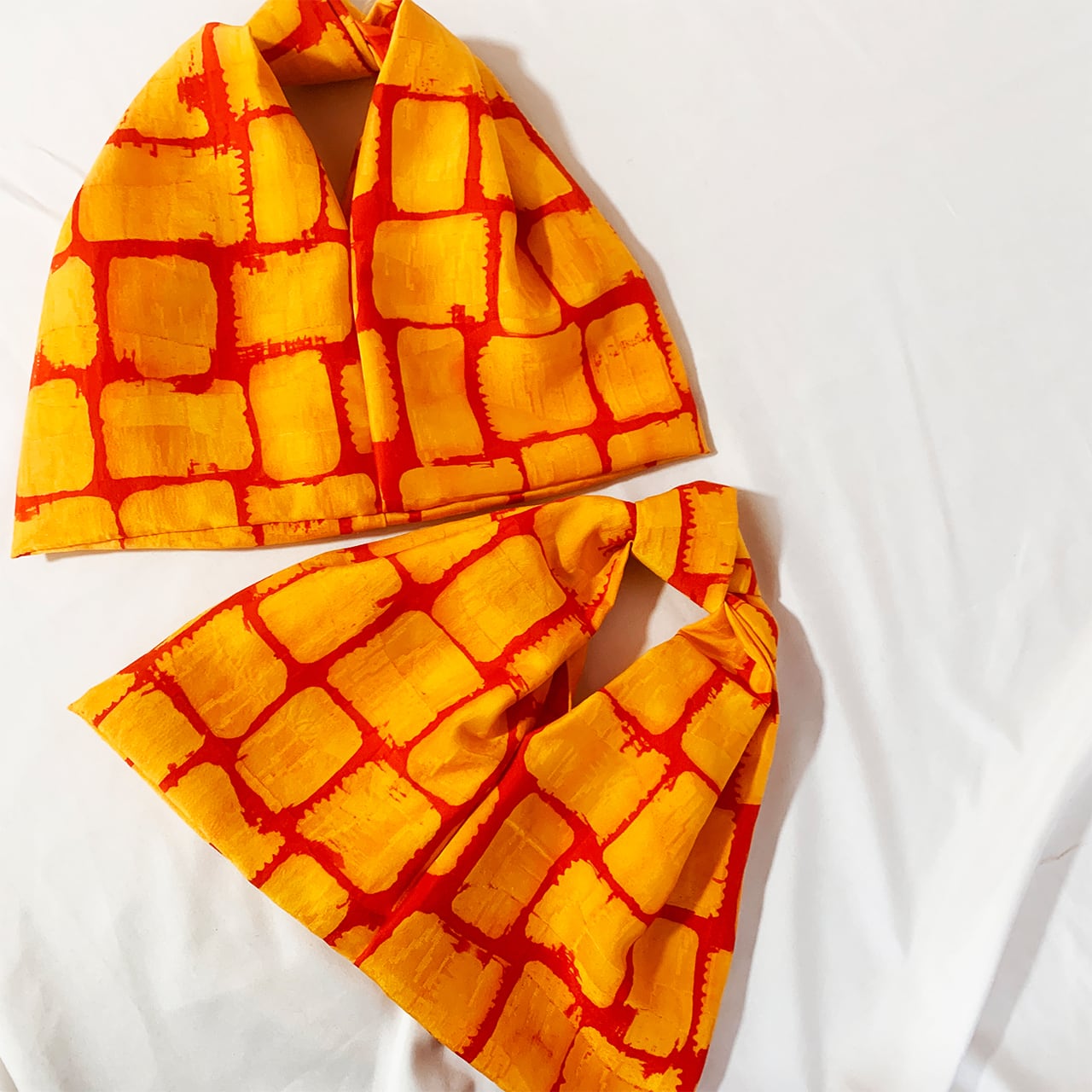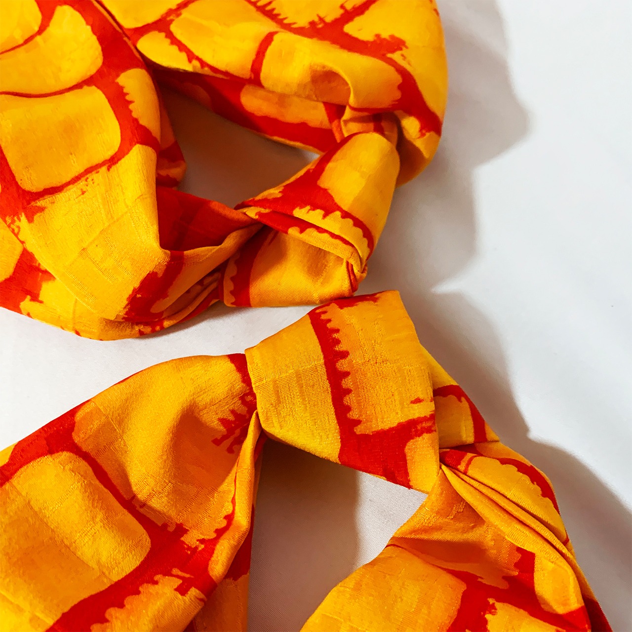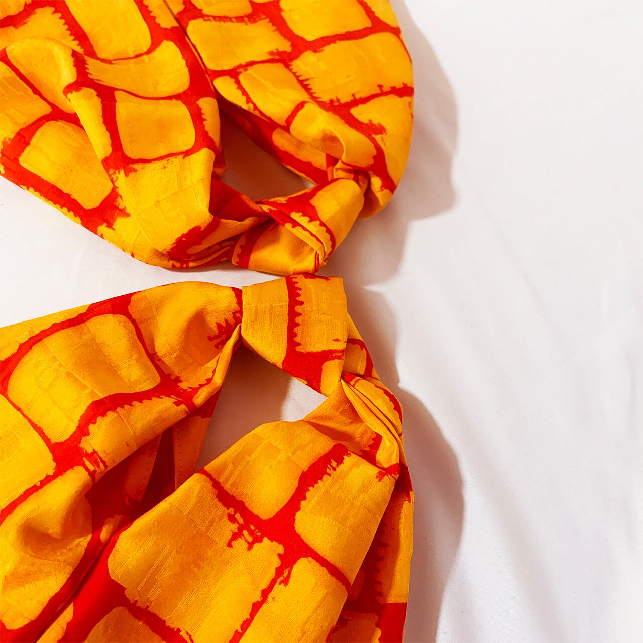 ◆朱赤×黄橙。和なカラーリングと、ジオメトリックな柄のバランスが◎◆