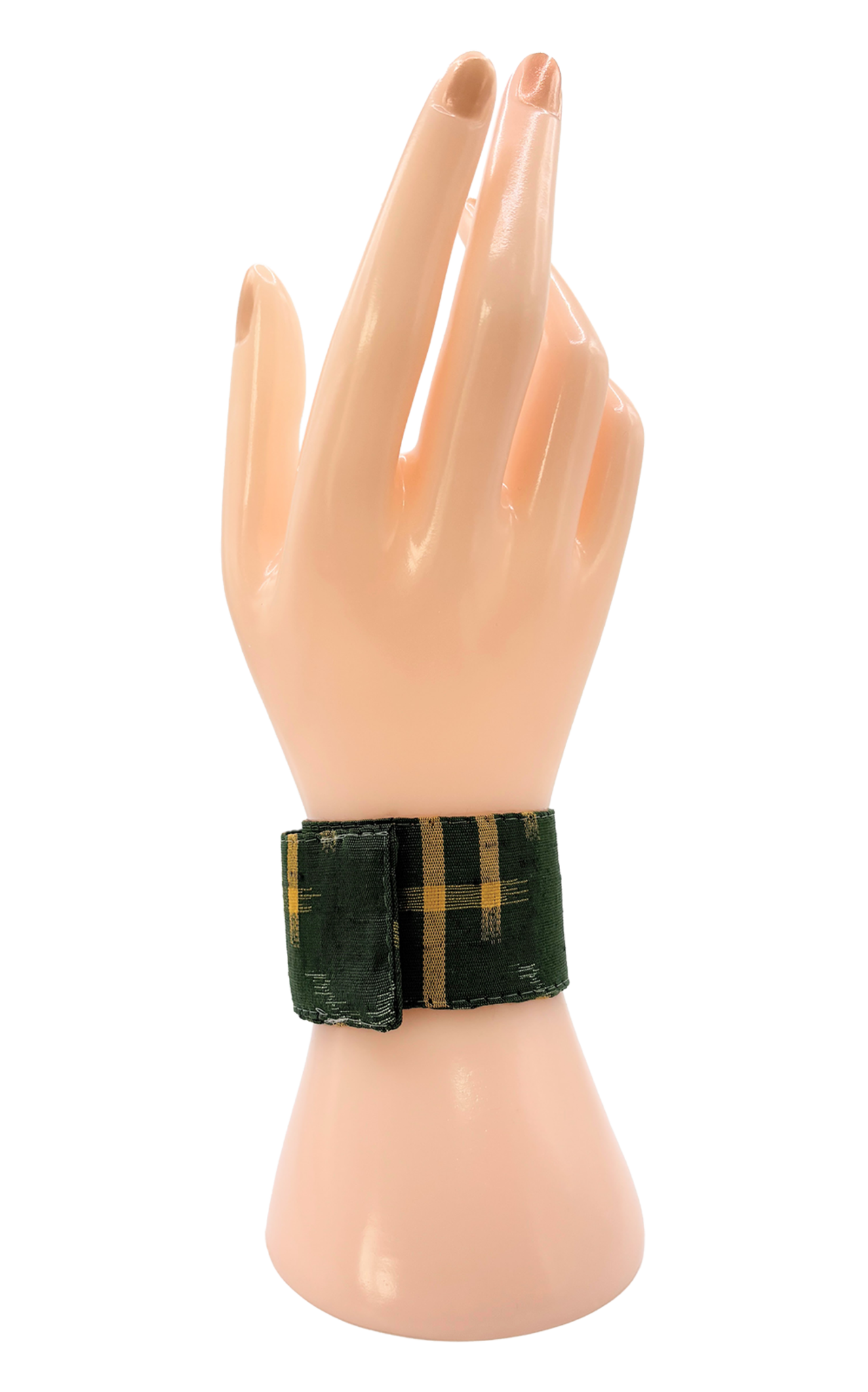 眠っていたお着物を解体して再構築した、kimonoスラップブレスレットです。