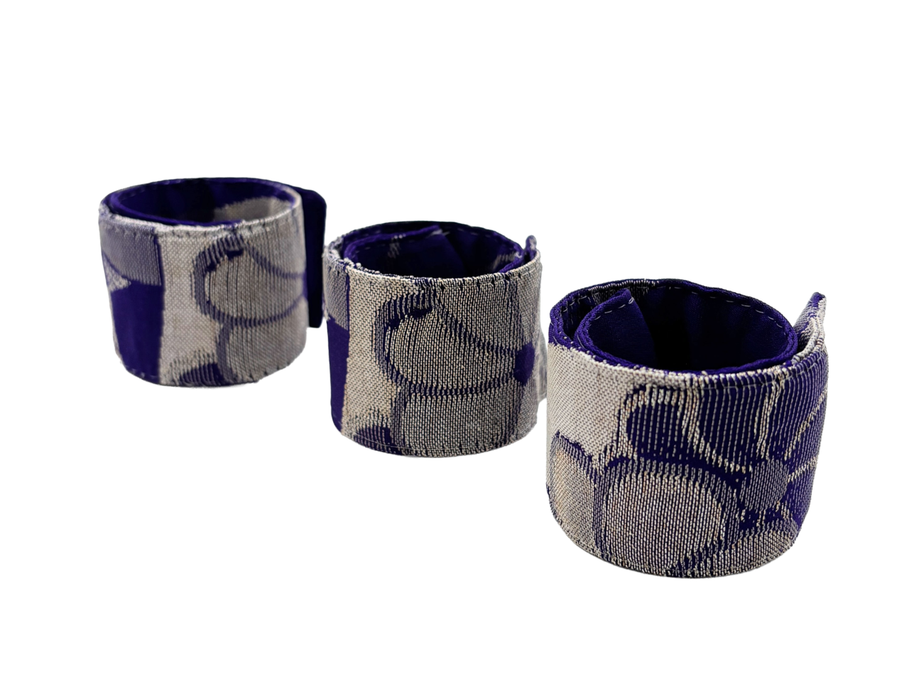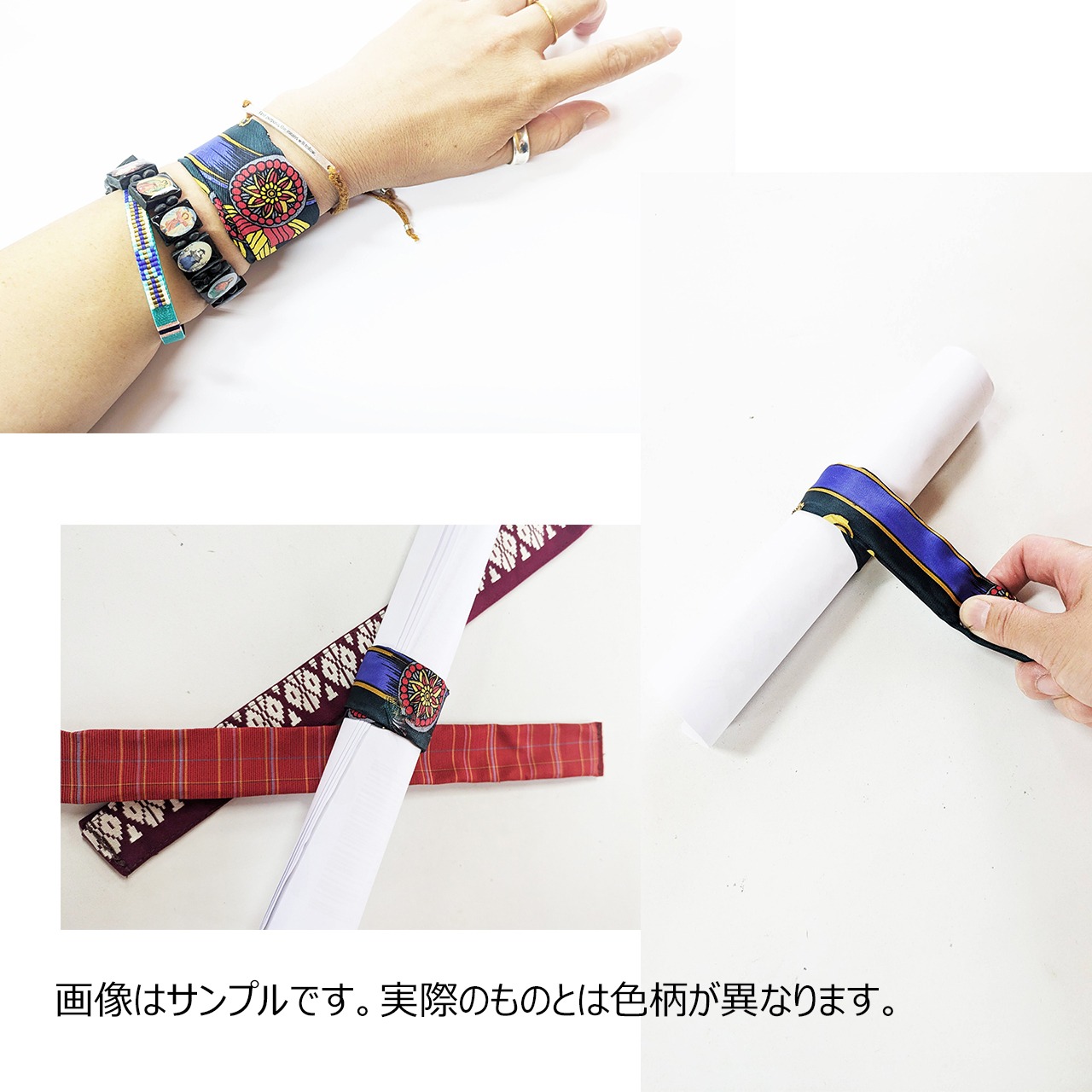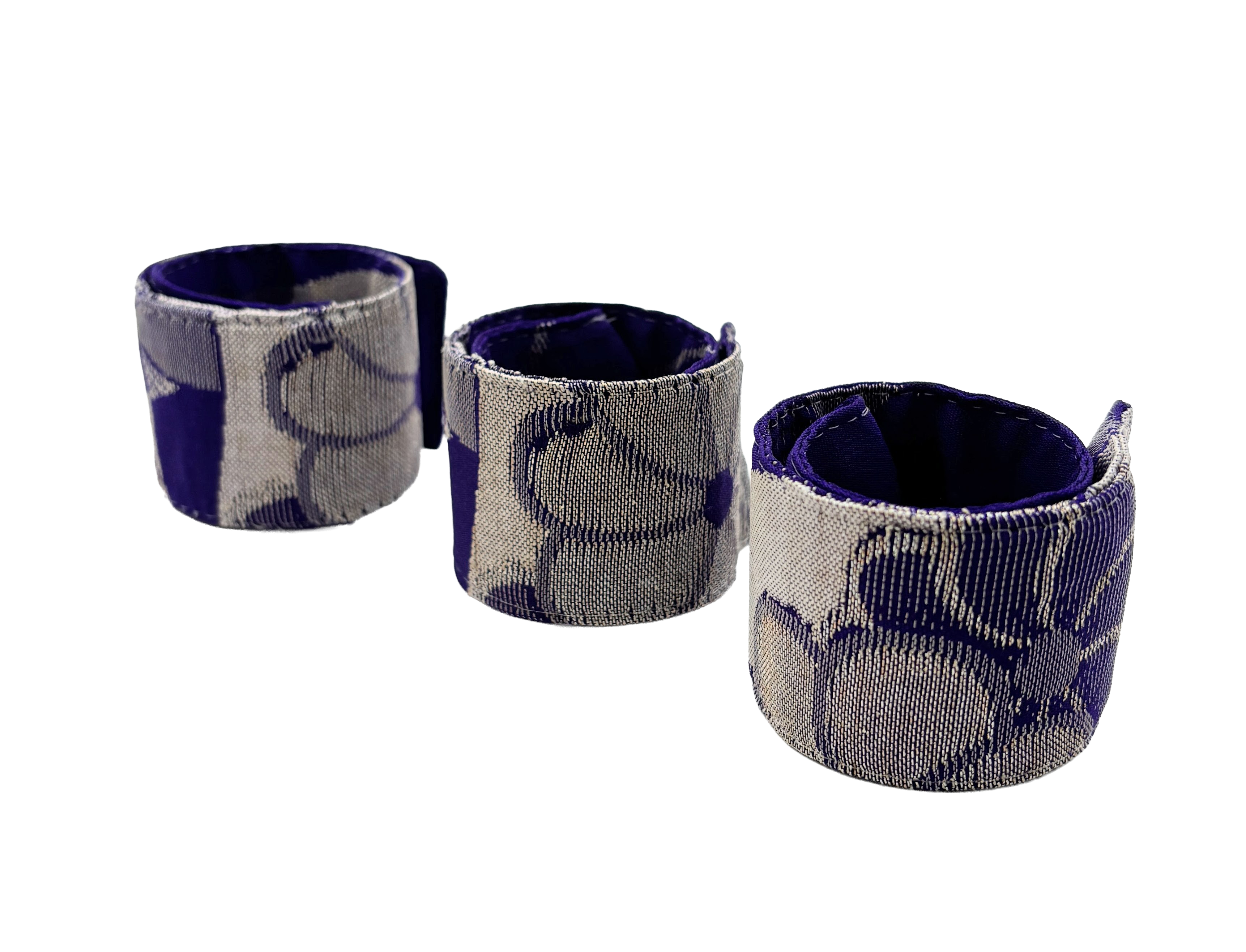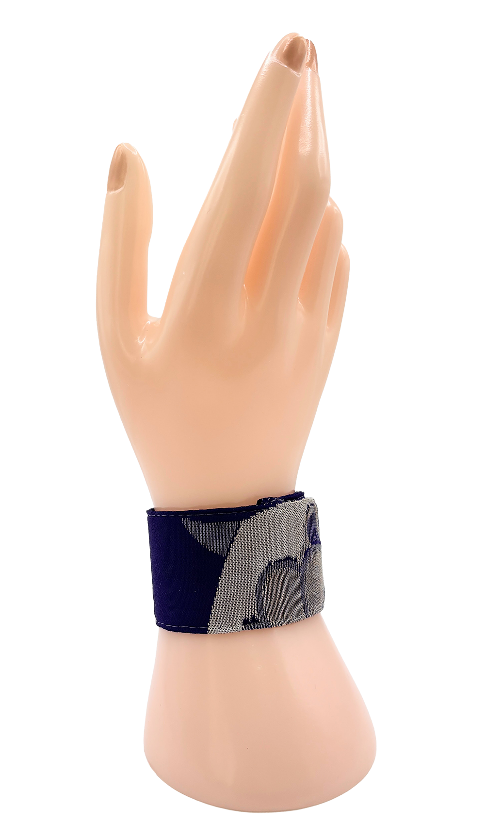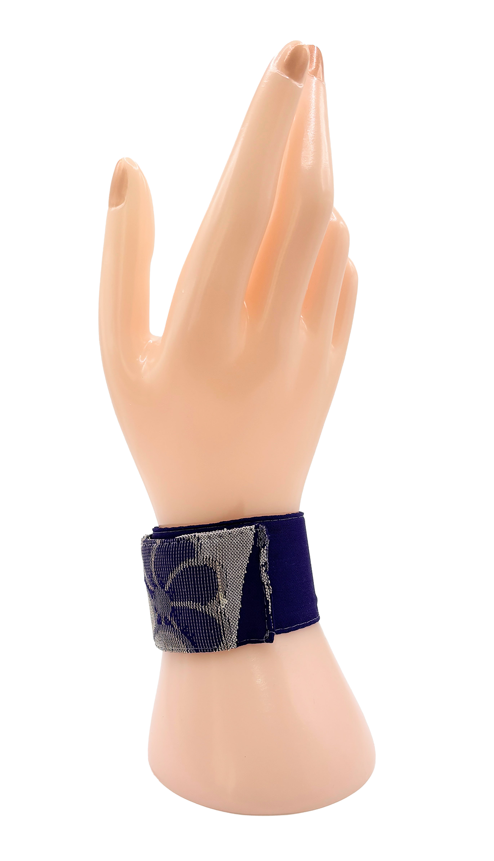 眠っていたお着物を解体して再構築した、kimonoスラップブレスレットです。