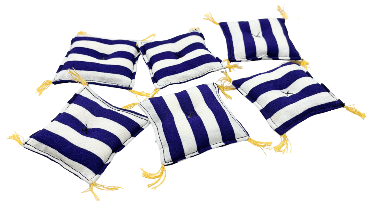 眠っていたお着物を解体して再構築した、着物ミニチュア座布団です。