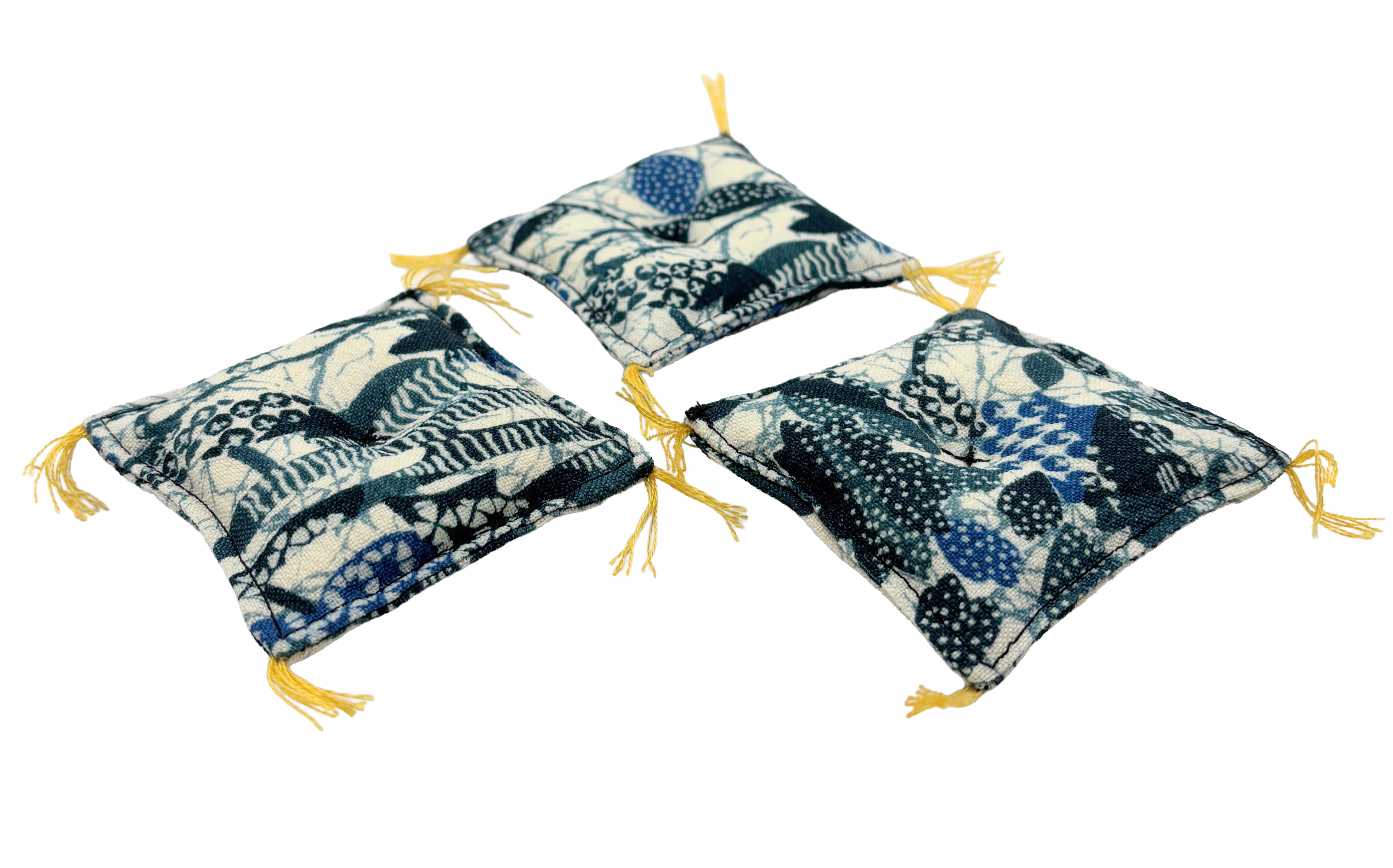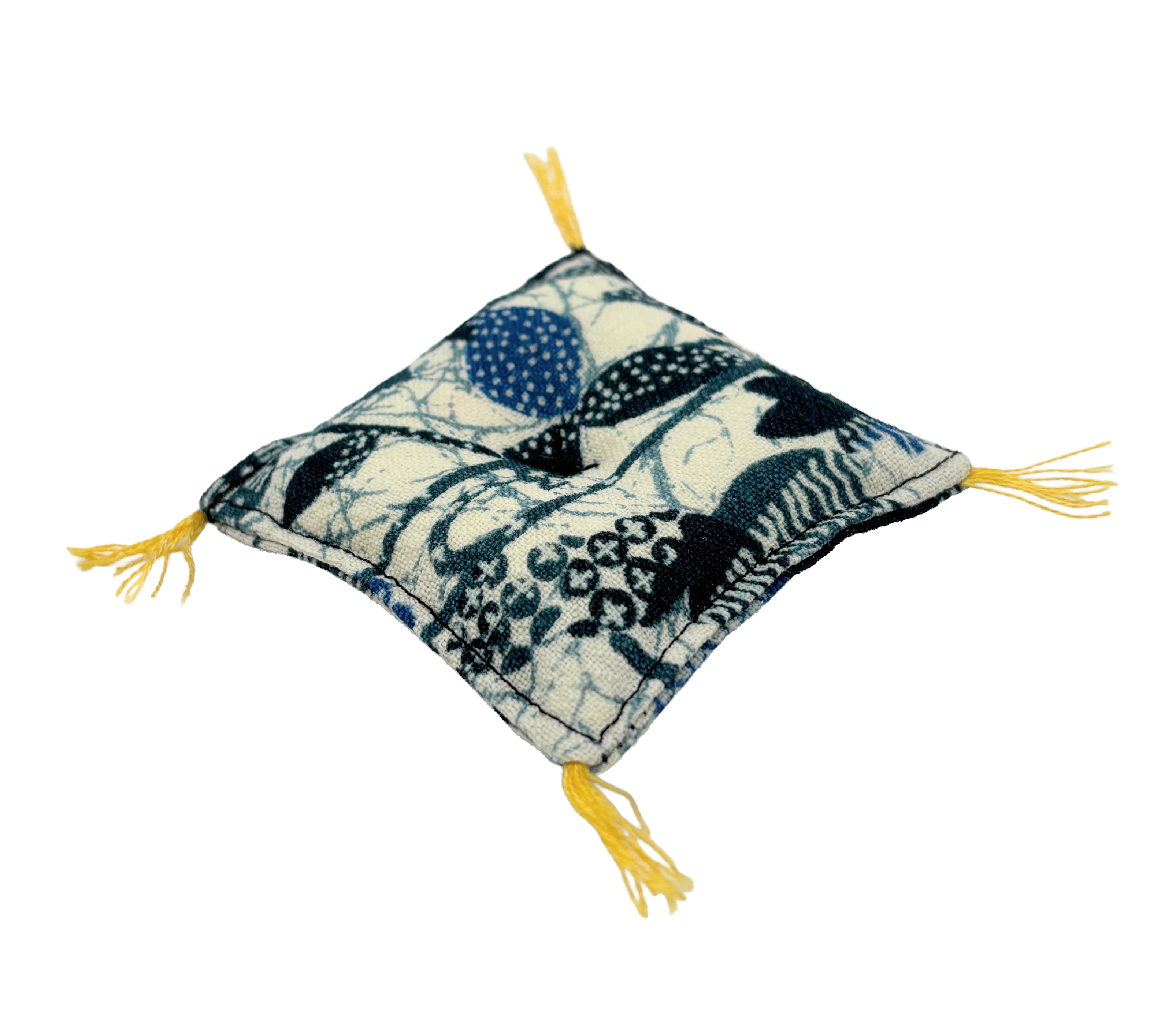 眠っていたお着物を解体して再構築した、着物ミニチュア座布団です。