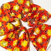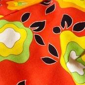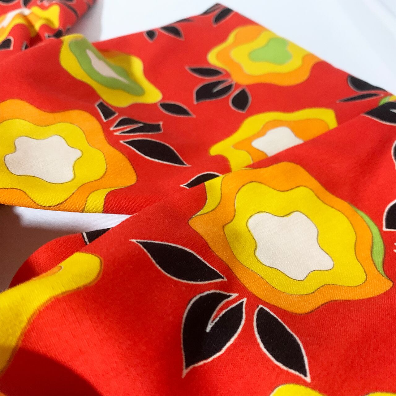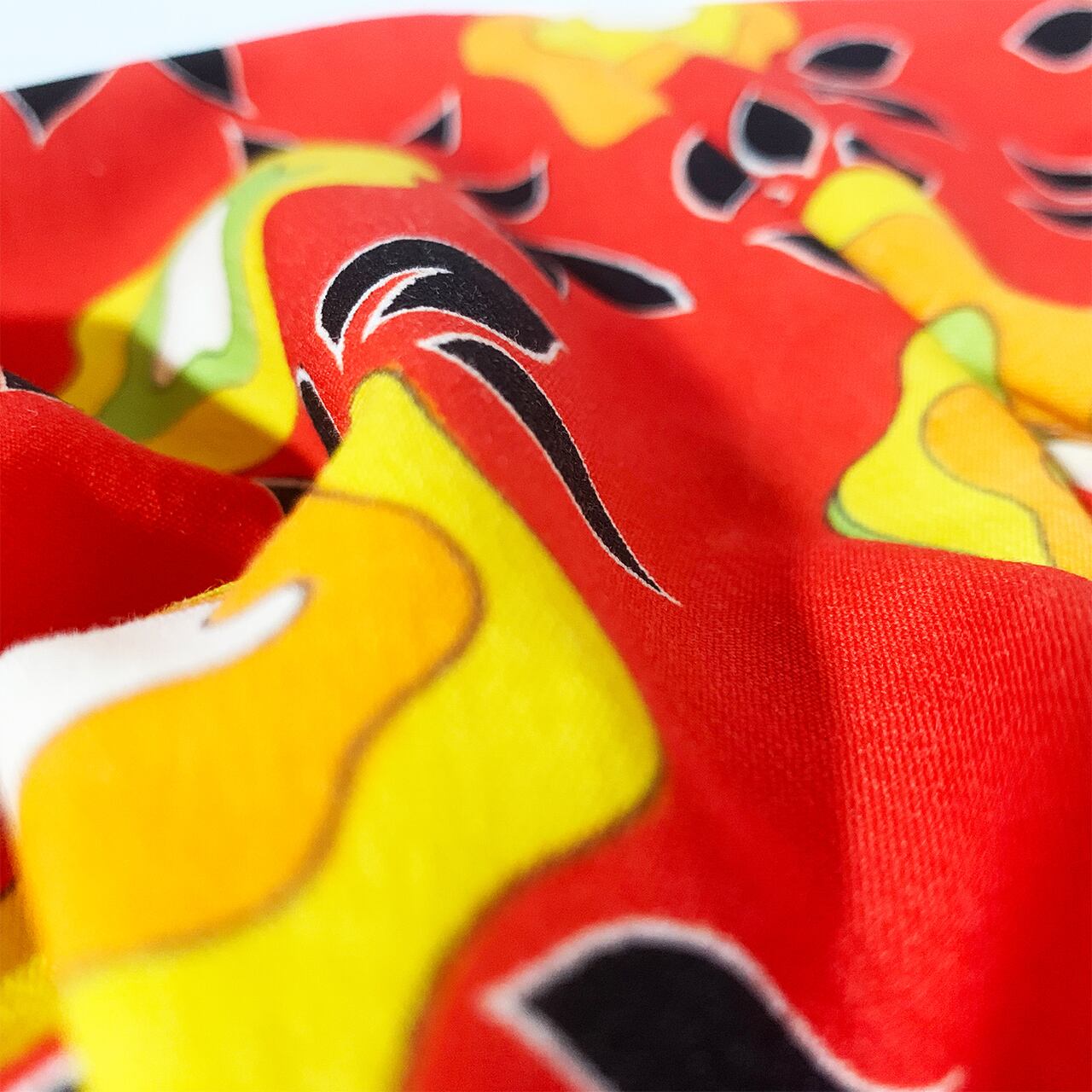 とても鮮やかな朱赤をベースに、濃淡の黄や黄緑、白を散りばめた中で締めのブラックがかなり良い仕事をしています。
