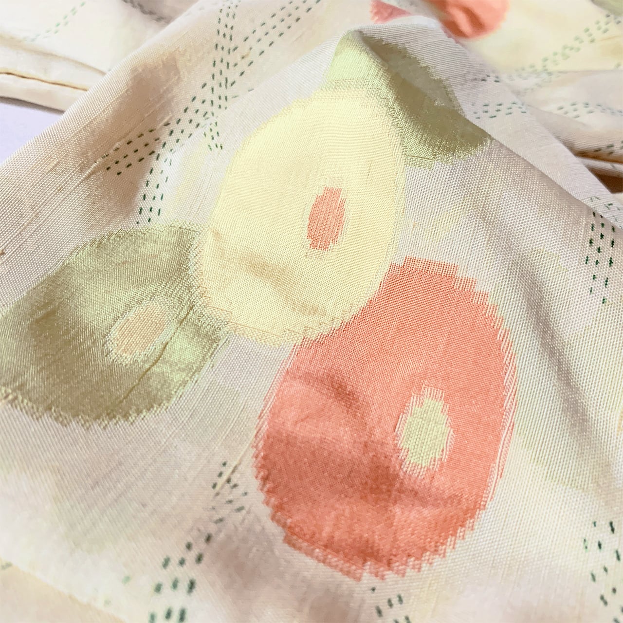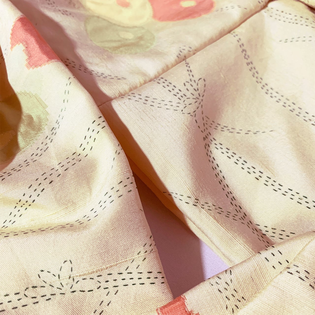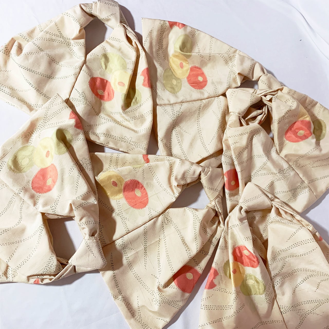 ※※着物に仕立ててあったものを解体しているため、アイロンなどでもとれなかった折り目やシワなどが残っている場合がございます。ぜひそれ自体も味として受け止め、思いをはせていただけますと幸いです。
