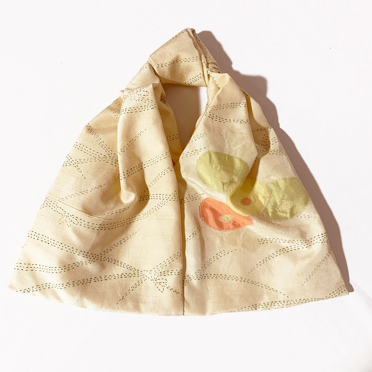 眠っていたお着物を解体して再構築した、kimonoワンマイルバッグです。