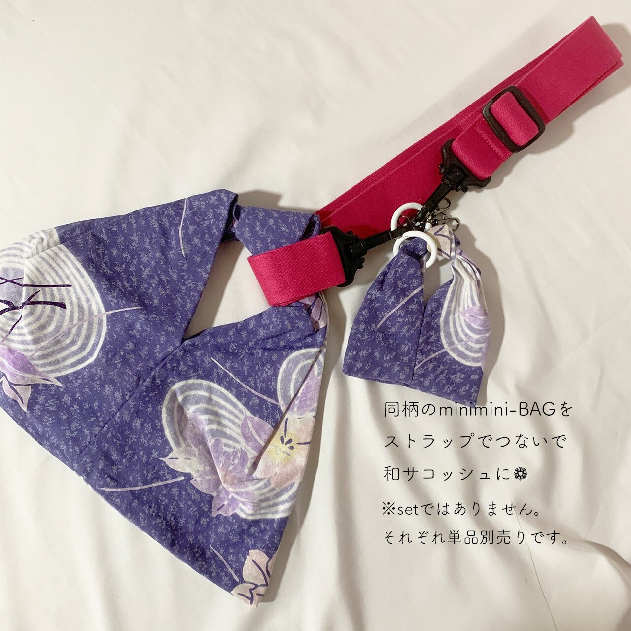 同生地のMINIMINI-BAGとストラップを組み合わせ、和サコッシュとしてどうぞ