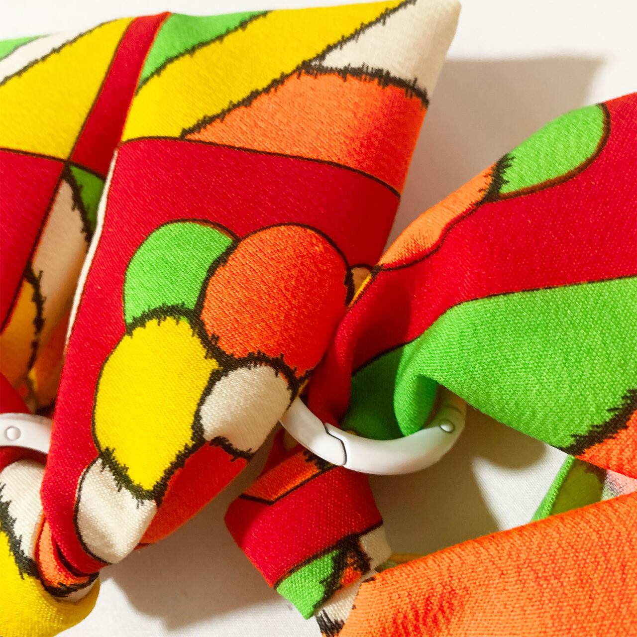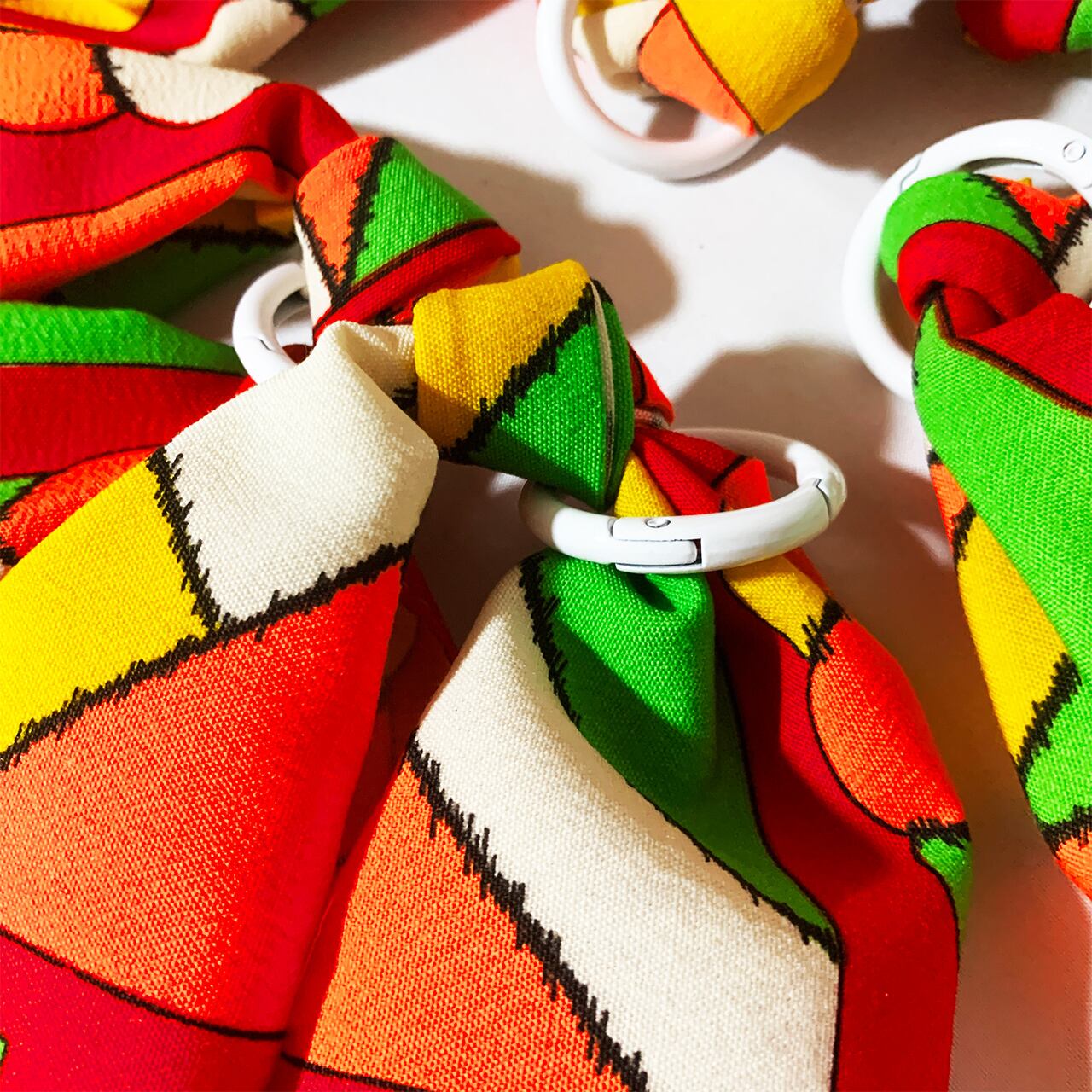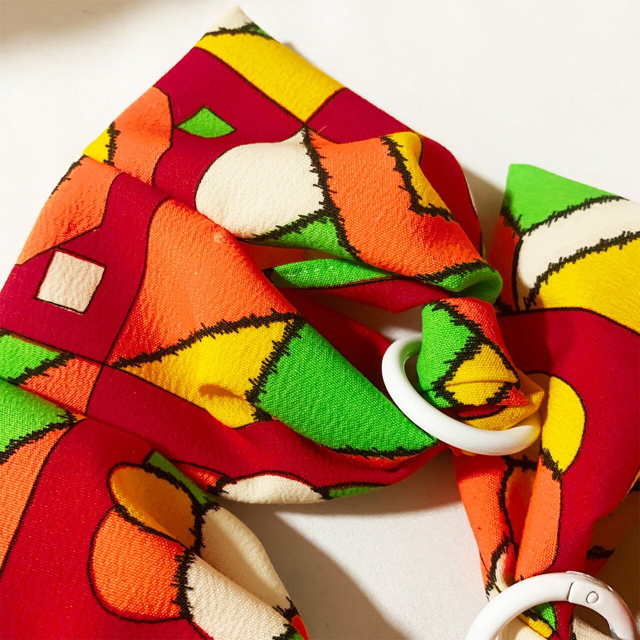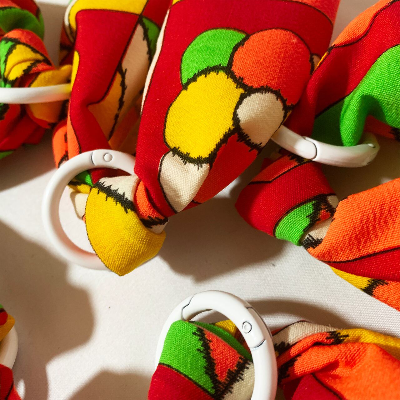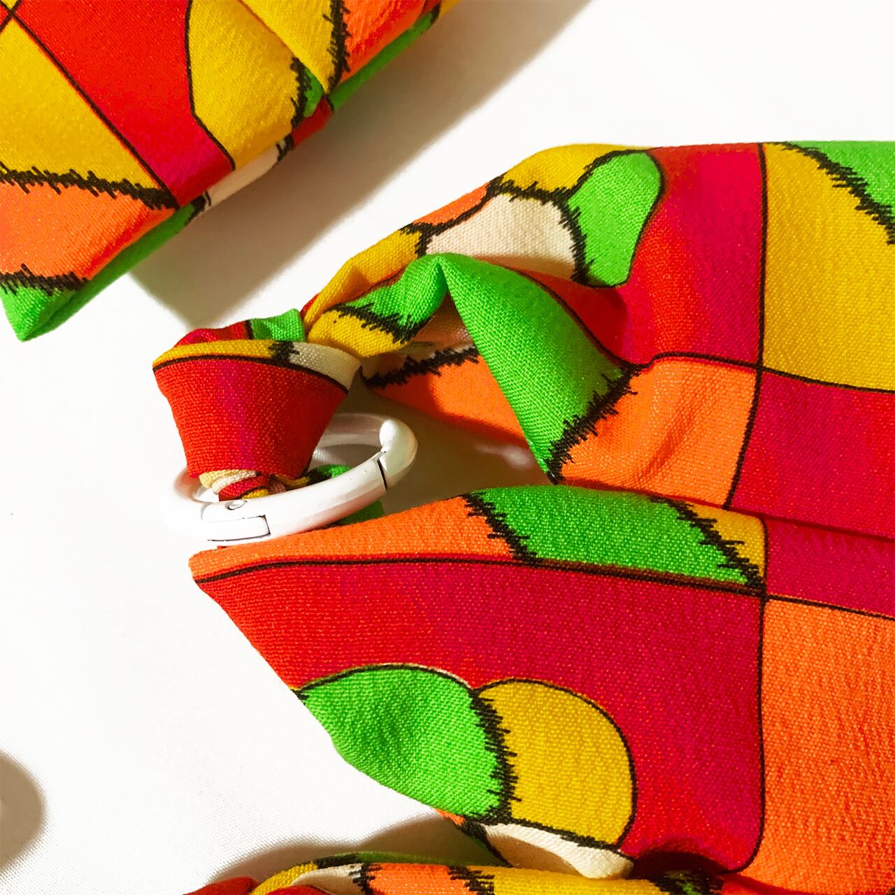 白い丸カラビナがひとつついていますので、別売りのストラップやお手持ちのバッグなどにつけたりしてもとってもkawaii!