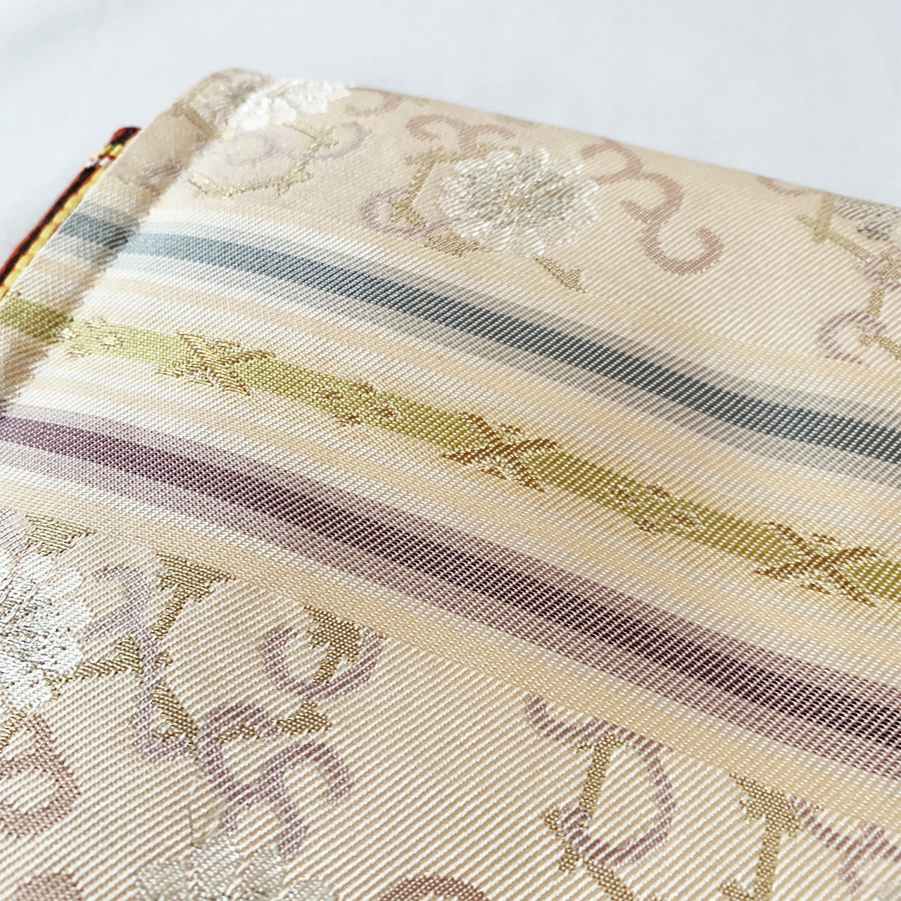 定番の帯ワンマイルバッグには使用が難しい、織の豪華なものを使うことが多くなります。とっても華やかで絢爛。