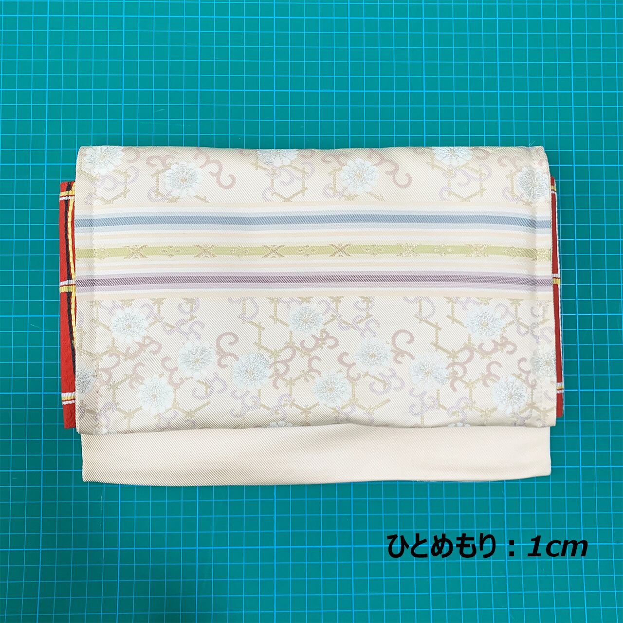 半幅の帯をフラップ留め・中の仕切りとして使用しています。