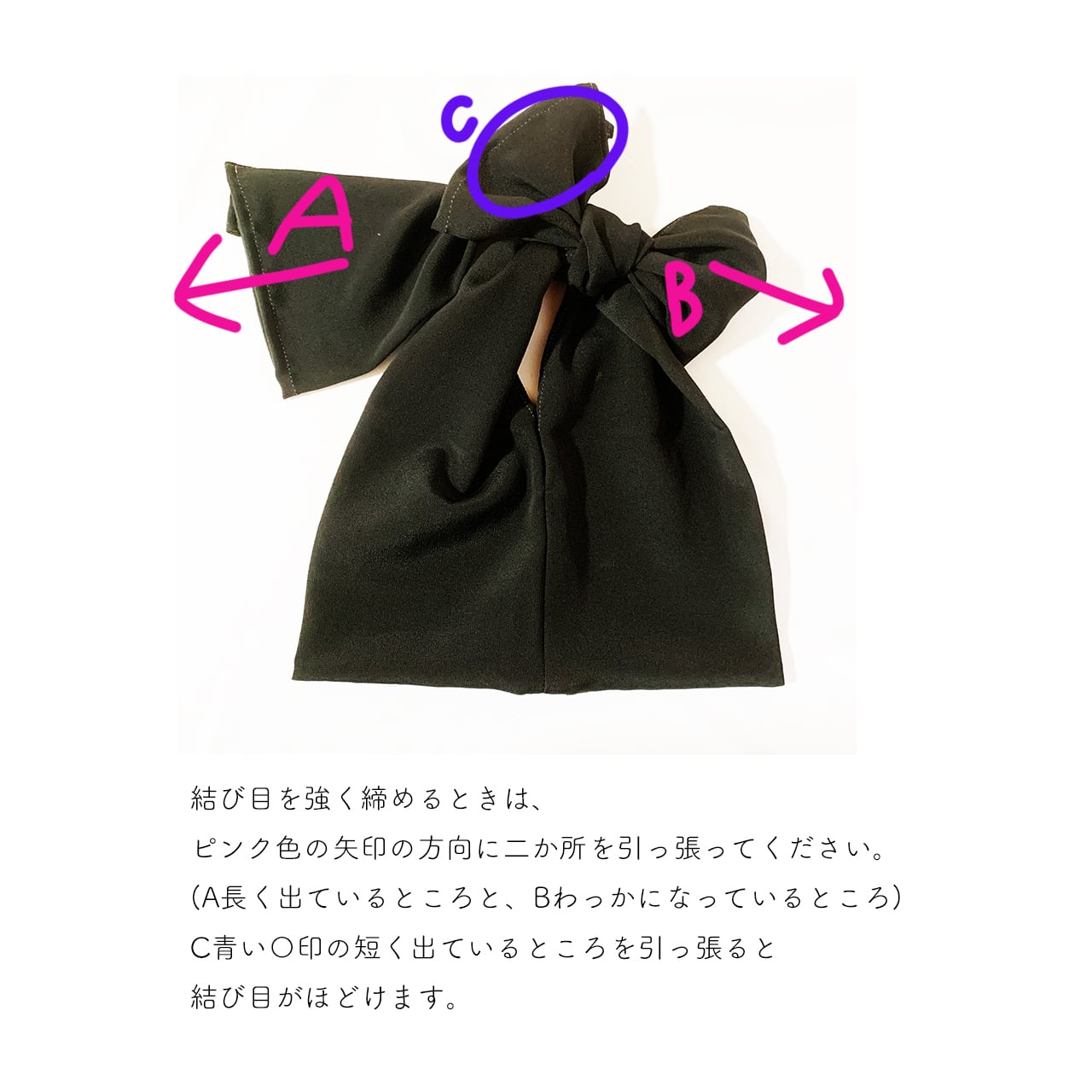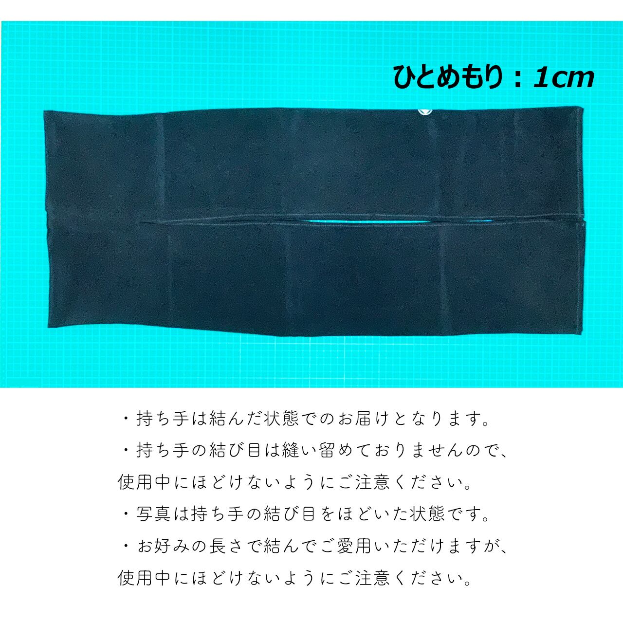 ※持ち手のりぼんは縫い留めていないのでほどけます。使用中に緩まないようご注意ください。締め方は画像にてご確認ください。