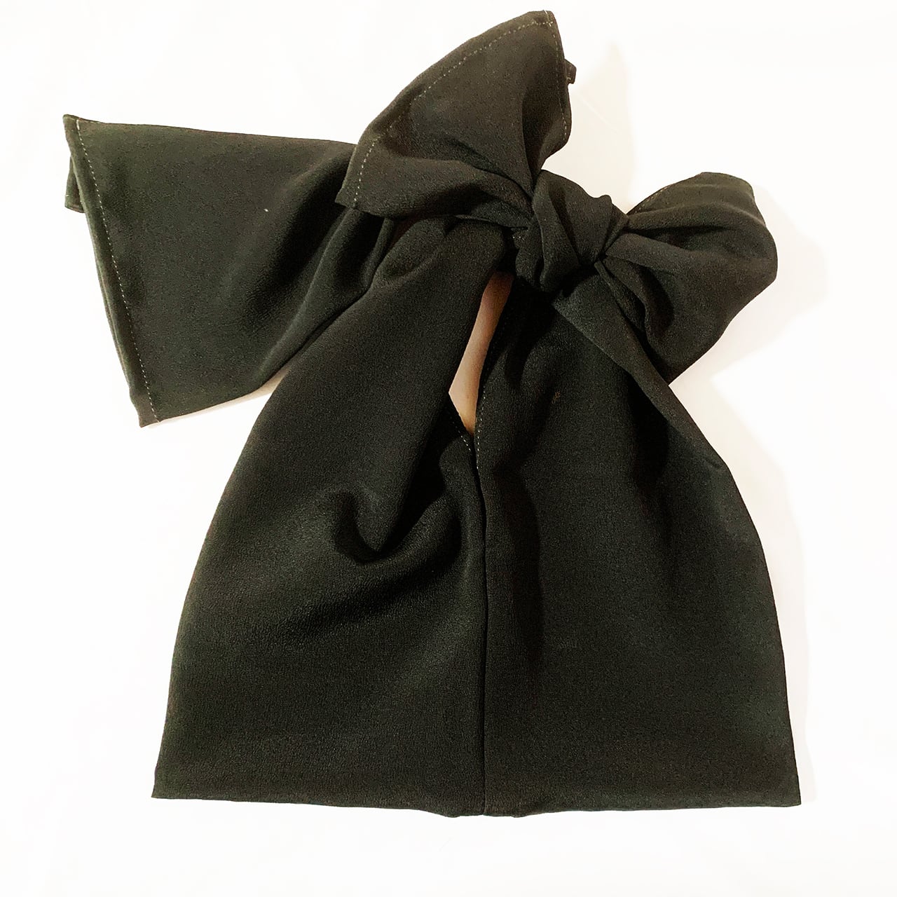 ※お好みの長さで結んでお使いいただけますが、生地は繊細で古いものもございます。持ち手部分を長くした場合でも、重いものや鋭利なものは入れないようにしてください。