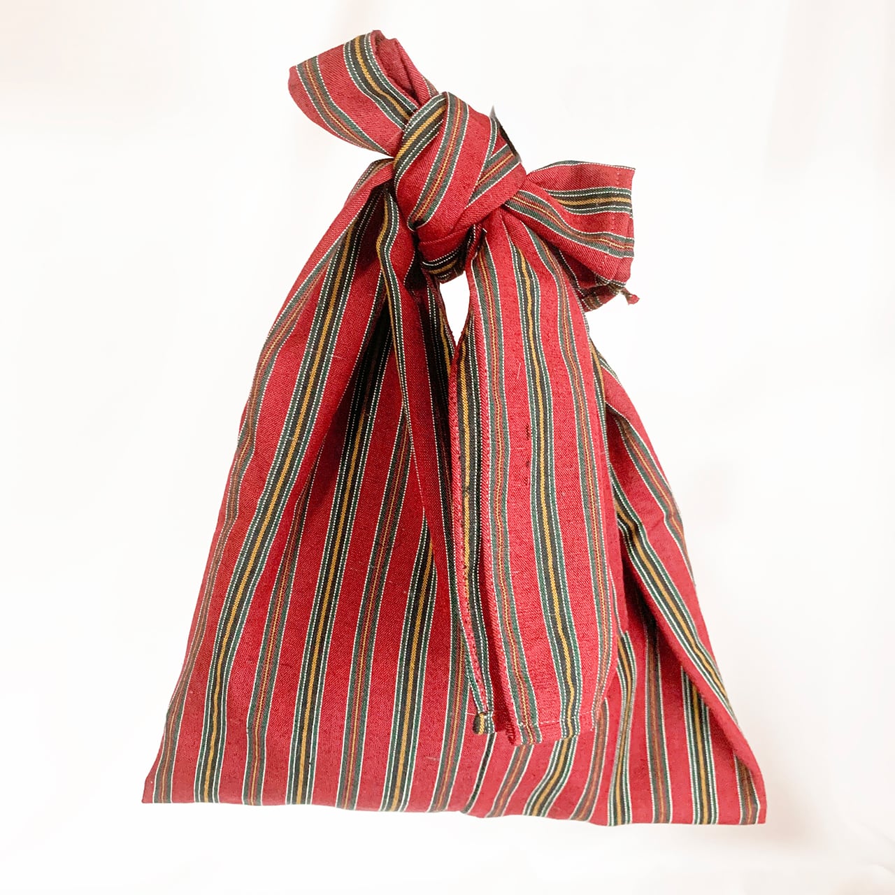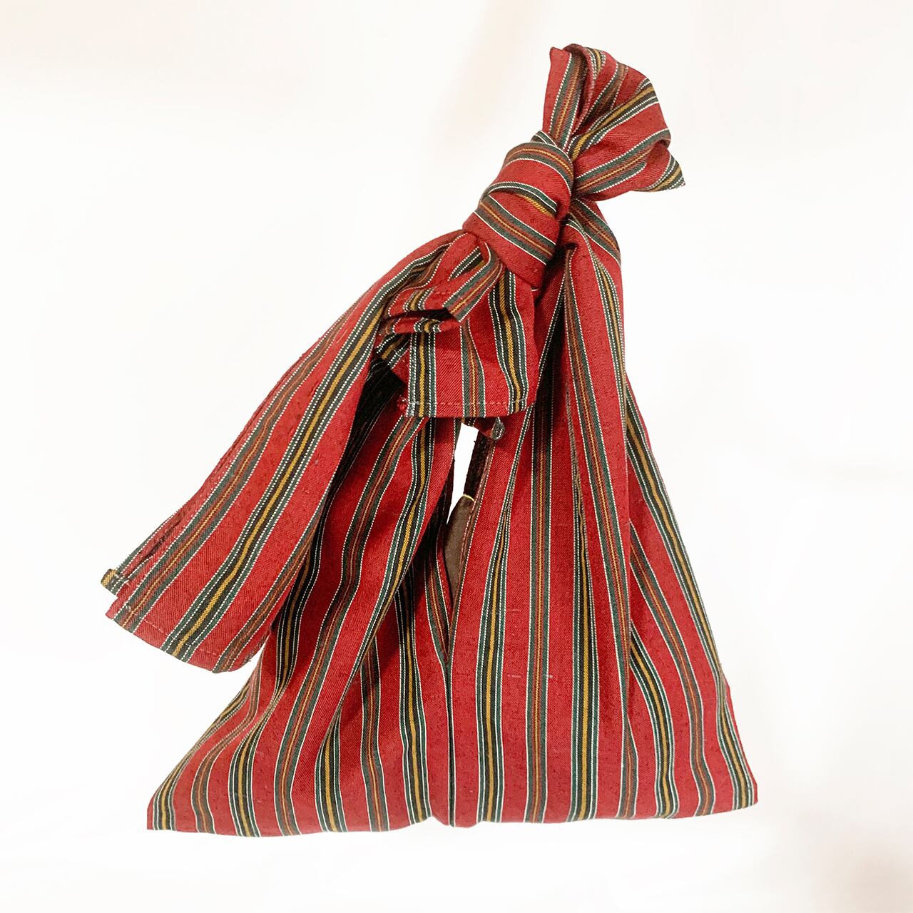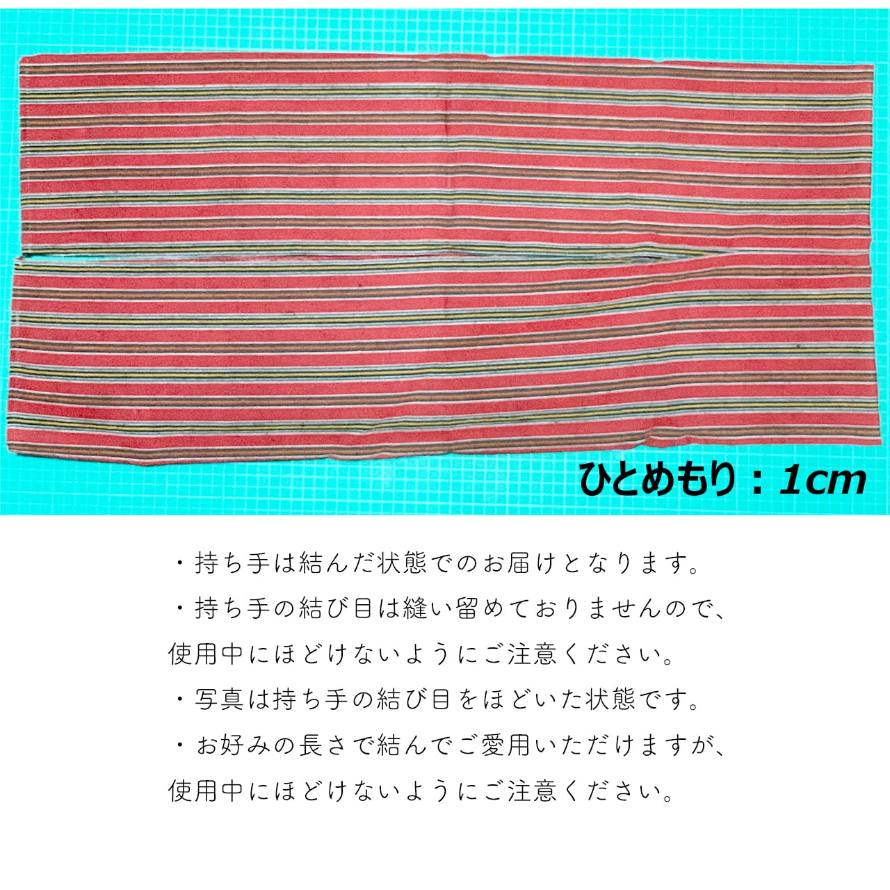 ※お好みの長さで結んでお使いいただけますが、生地は繊細で古いものもございます。持ち手部分を長くした場合でも、重いものや鋭利なものは入れないようにしてください。