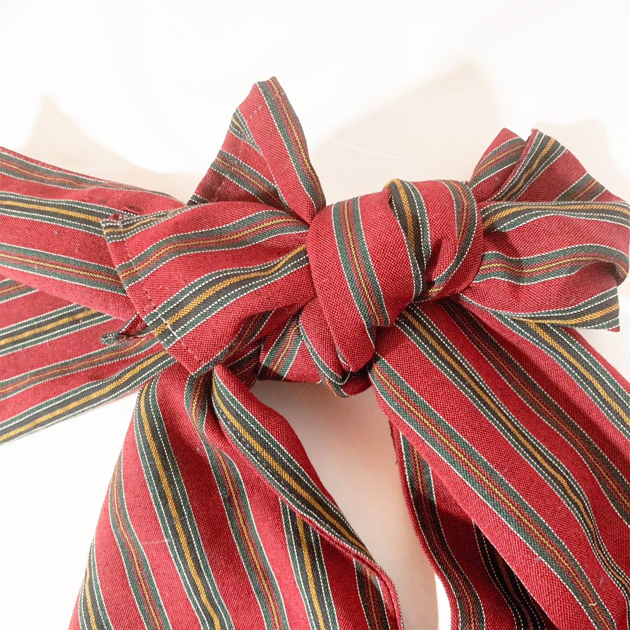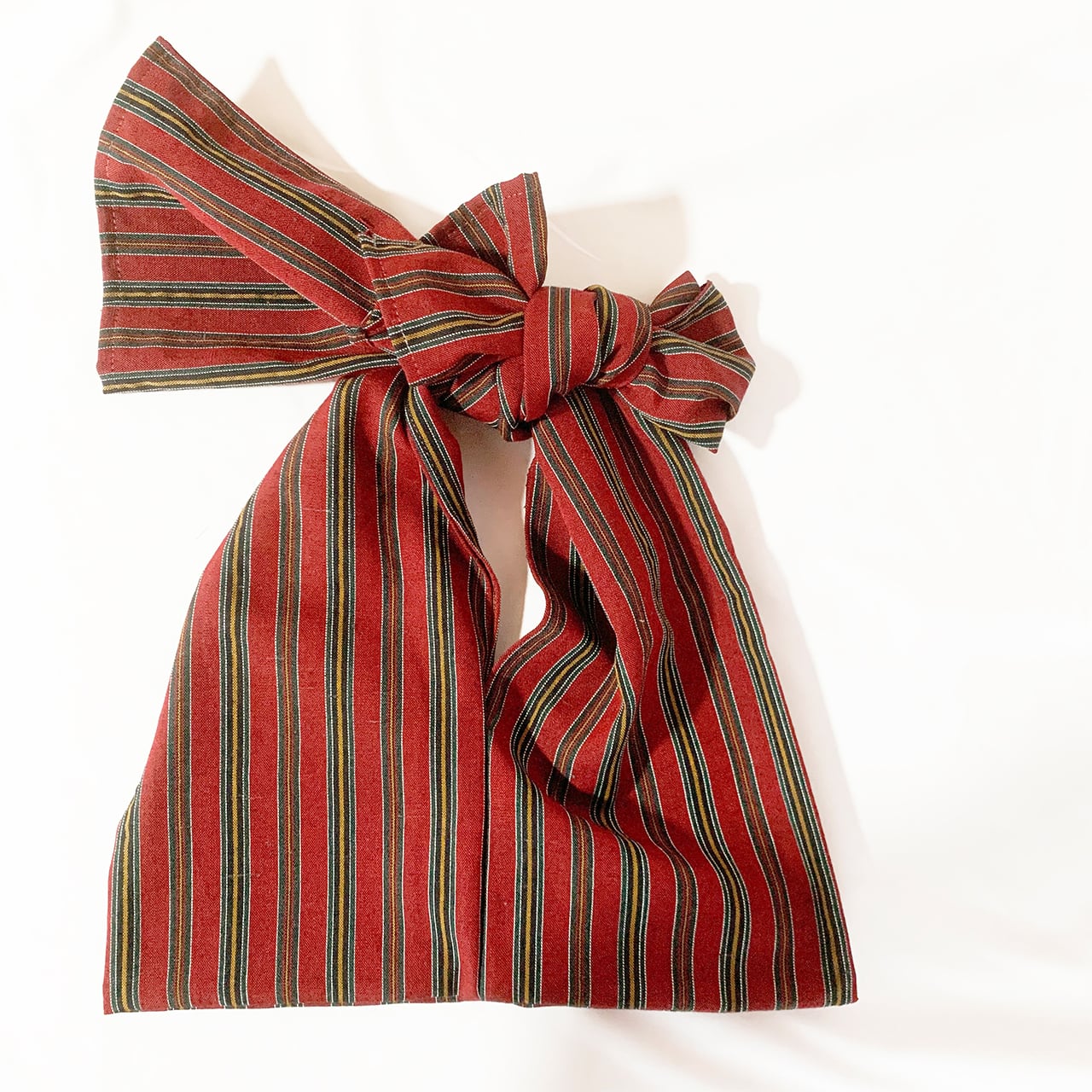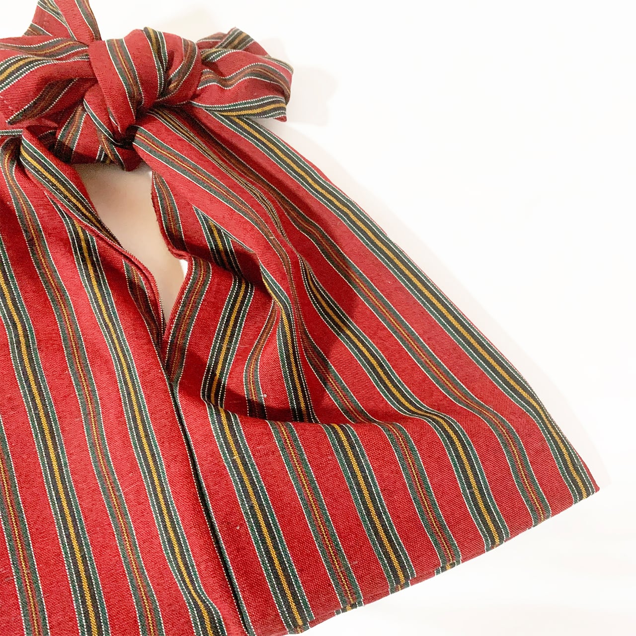※お好みの長さで結んでお使いいただけますが、生地は繊細で古いものもございます。持ち手部分を長くした場合でも、重いものや鋭利なものは入れないようにしてください。