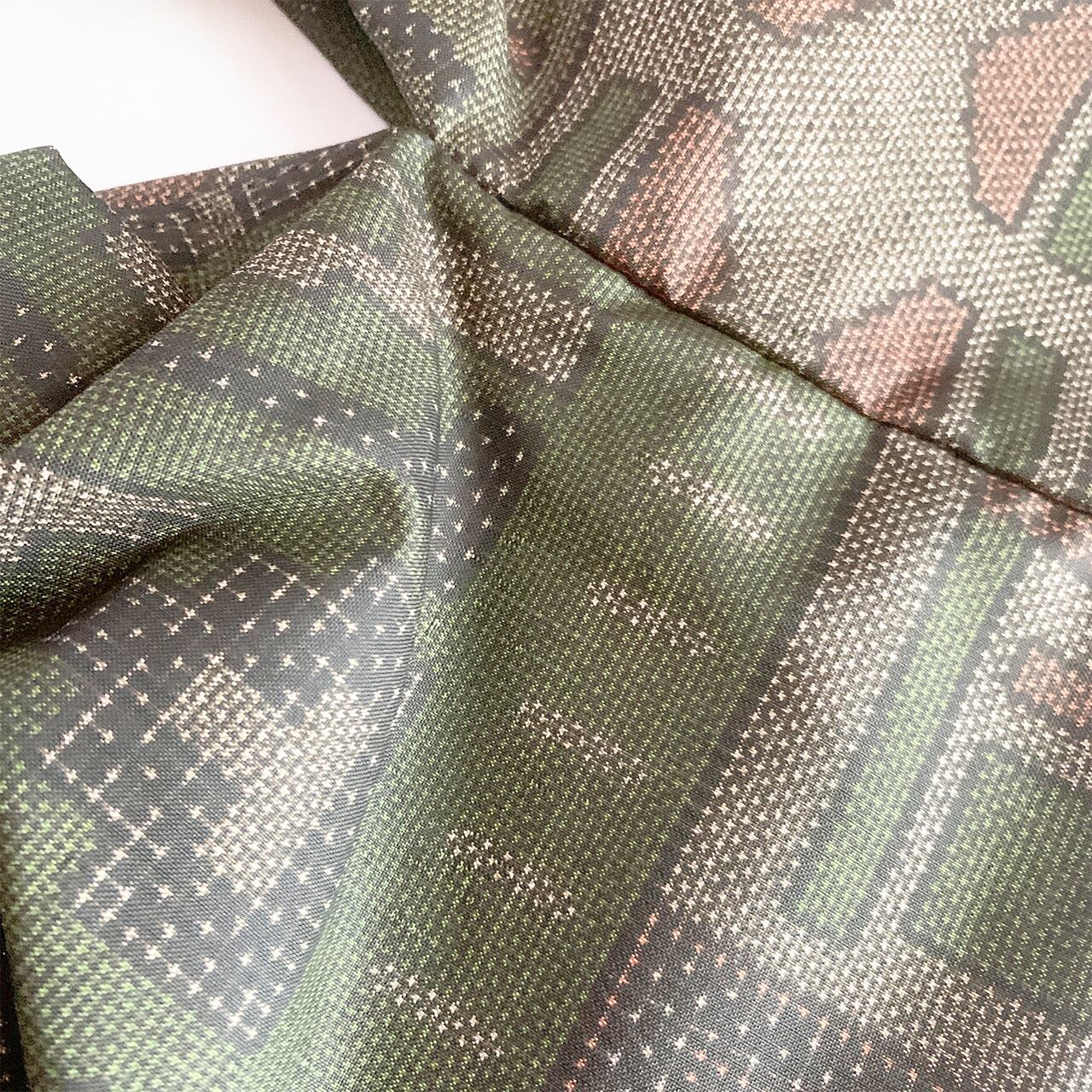 ※※着物に仕立ててあったものを解体しているため、アイロンなどでもとれなかった折り目やシワなどが残っている場合がございます。ぜひそれ自体も味として受け止め、思いをはせていただけますと幸いです。