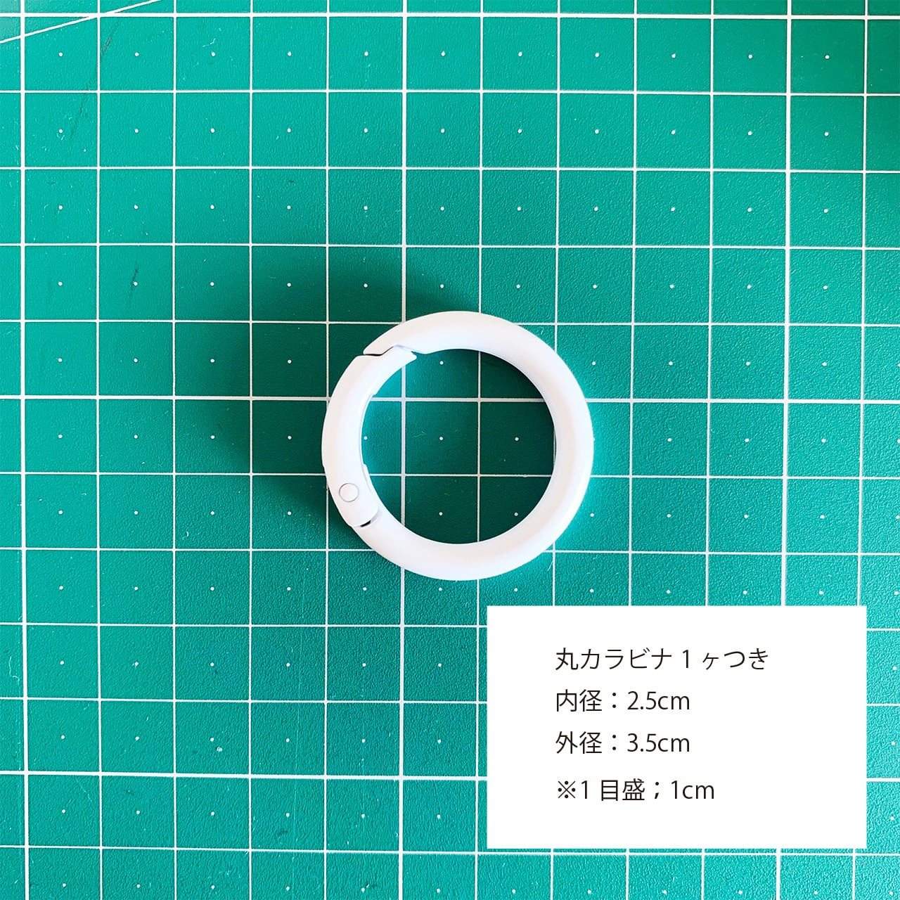 白い丸カラビナがひとつついていますので、別売りのストラップやお手持ちのバッグなどにつけたりしてもとってもkawaii!