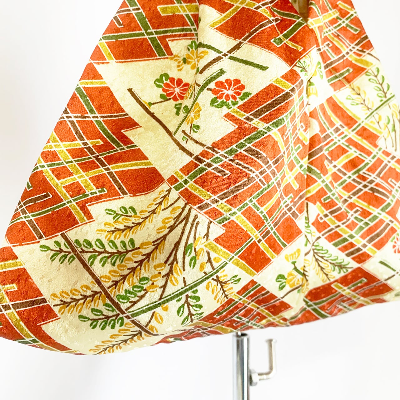 眠っていたお着物を解体して再構築した、kimonoワンマイルバッグです。