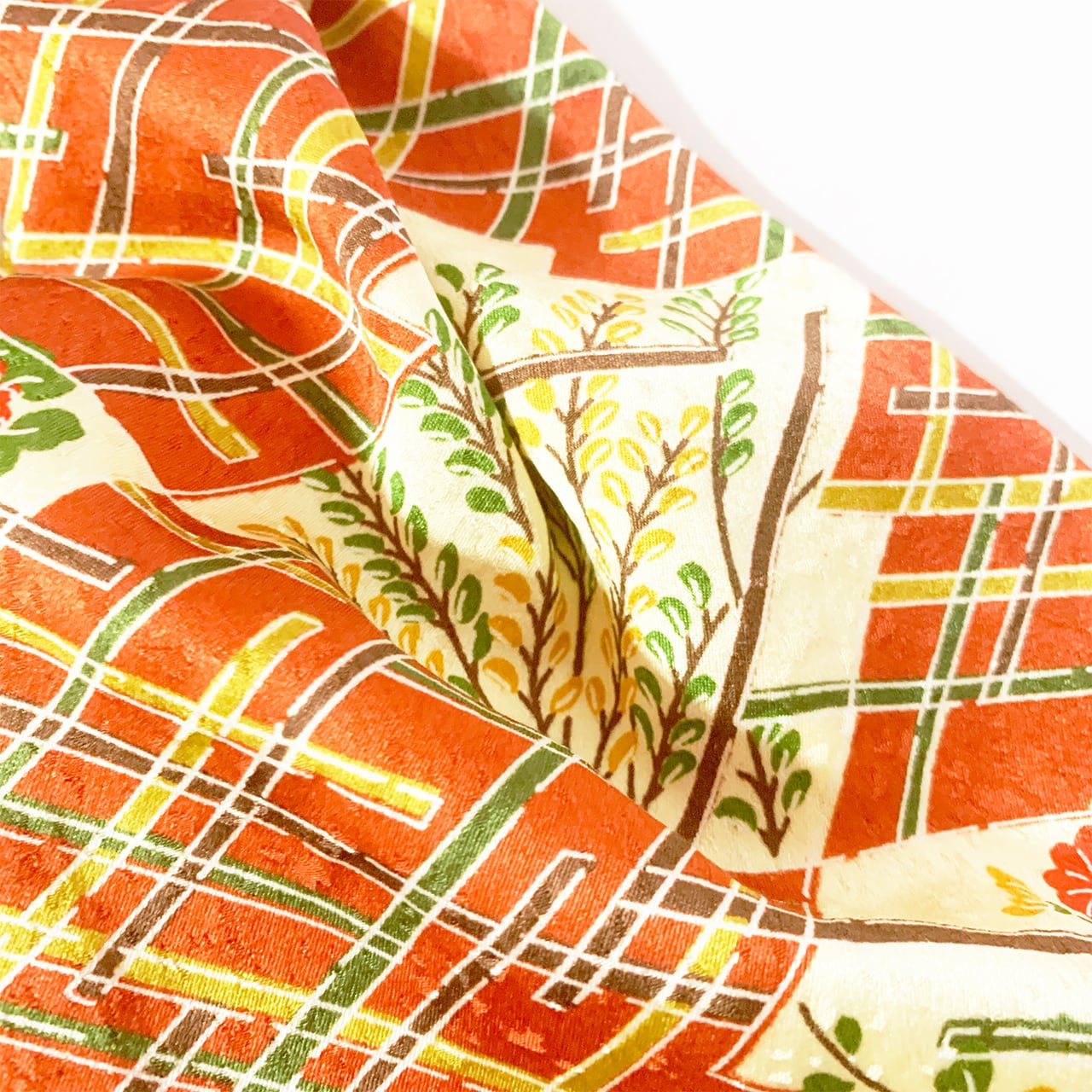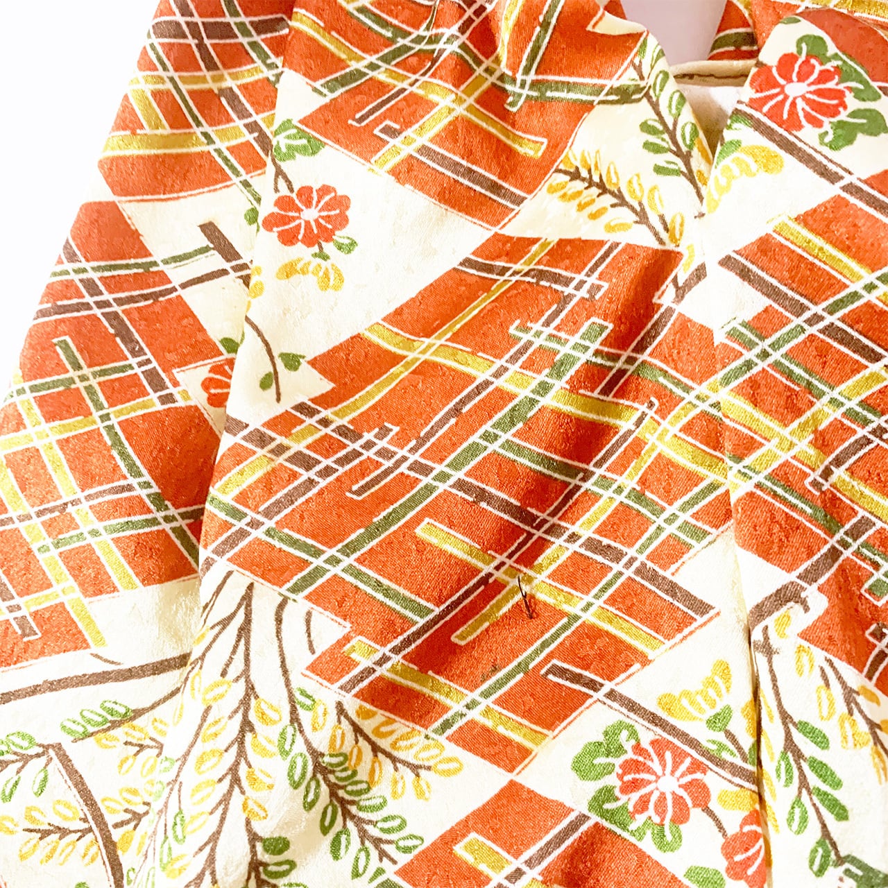 ※※着物に仕立ててあったものを解体しているため、アイロンなどでもとれなかった折り目やシワなどが残っている場合がございます。ぜひそれ自体も味として受け止め、思いをはせていただけますと幸いです。