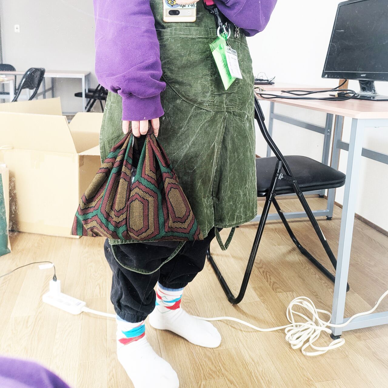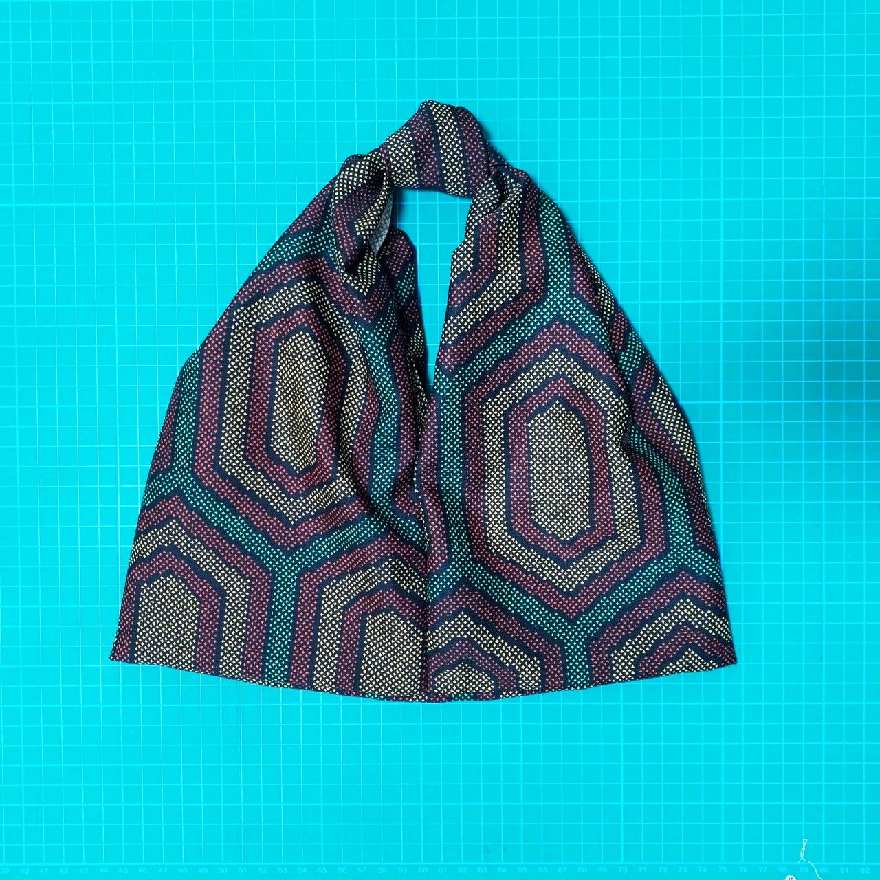 眠っていたお着物を解体して再構築した、おキモノワンマイルバッグです。